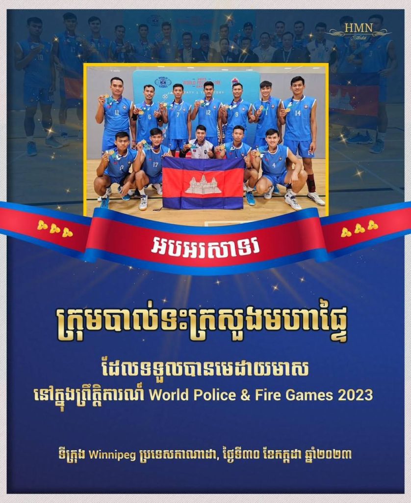 សូមអបអរសាទរក្រុមបាល់ទះក្រសួងមហាផ្ទៃ ឈ្នះមេដាយមាស នៅក្នុងព្រឹត្តិការណ៍ World Police & Fire Games 2023 នៅទីក្រុង Winnipeg ប្រទេសកាណាដា 🥇🇰🇭One-Minuteអត្ថបទដោយ៖AMS OneMinute #ams1minute AMS OneMinuteអត្ថបទមុនអត្ថបទបន្ទាប់