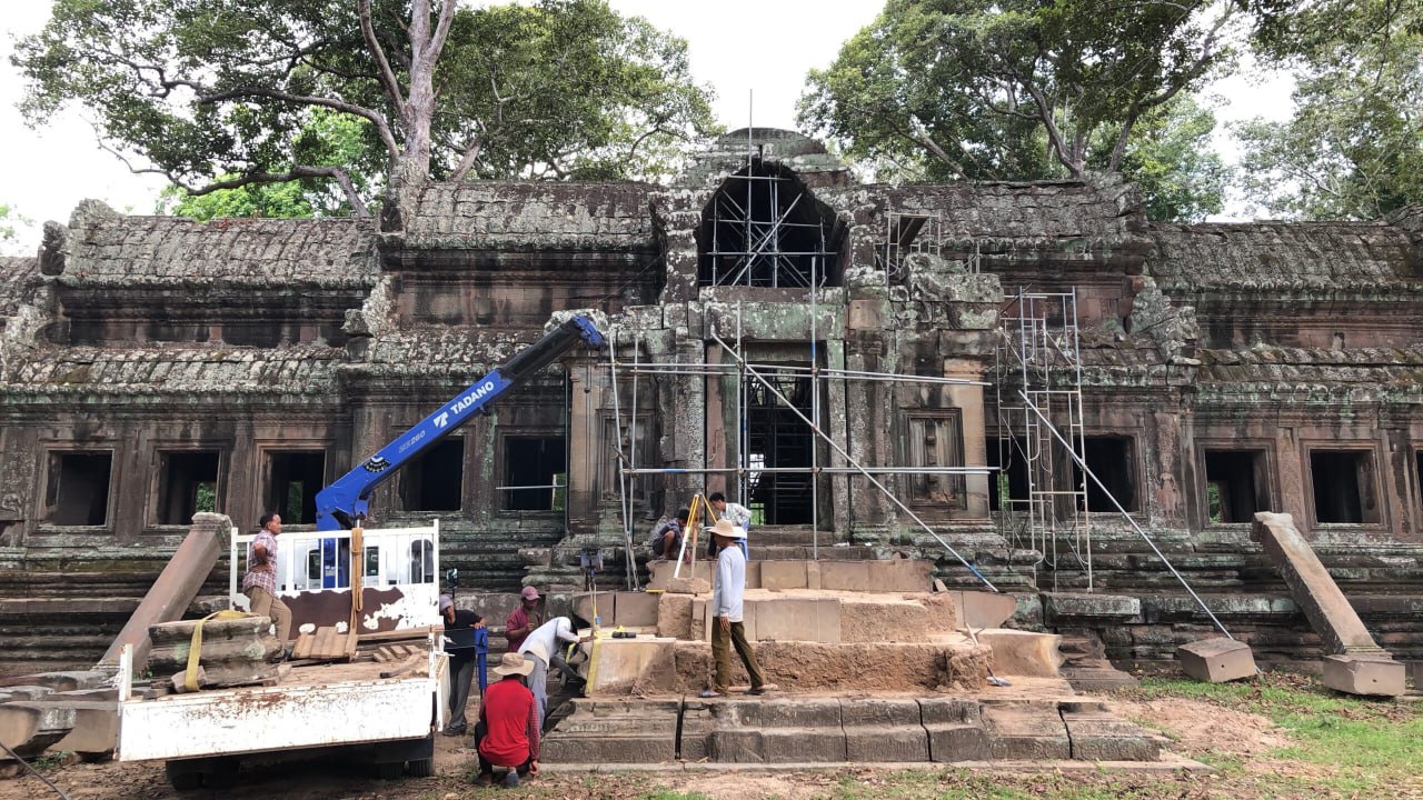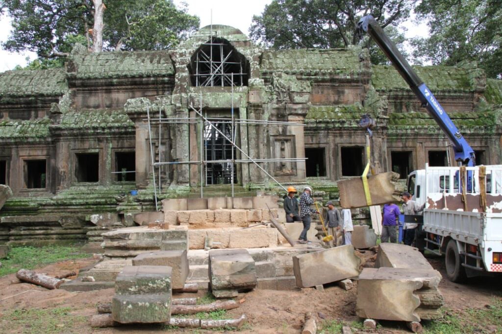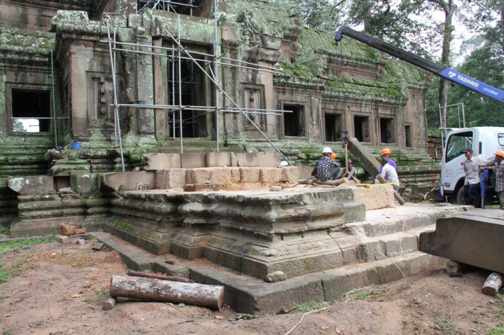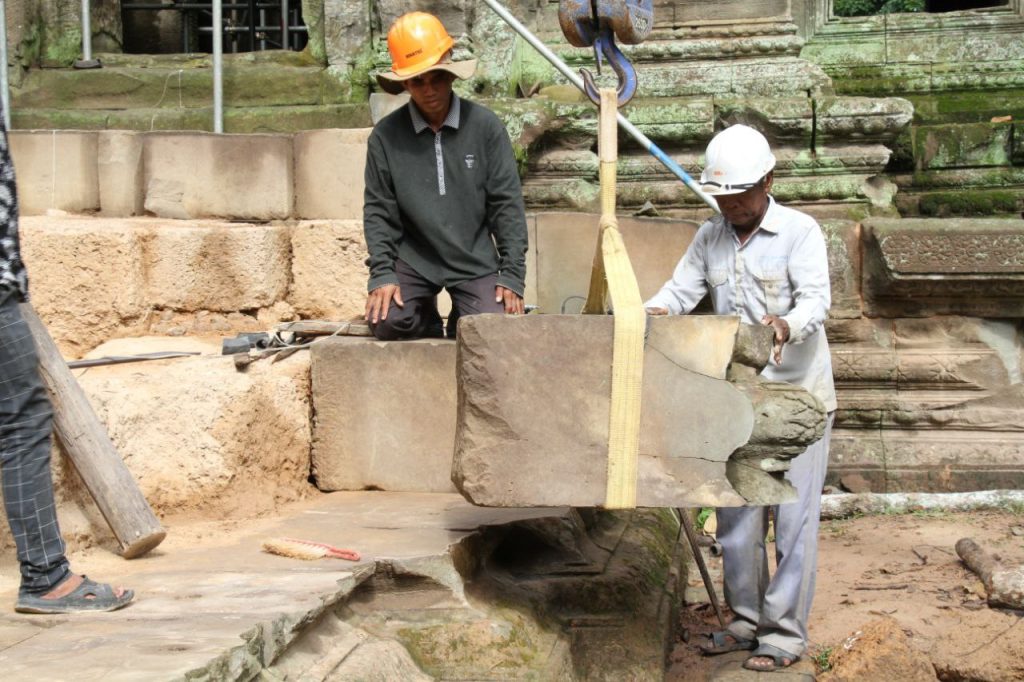 លោកស្រីបន្តទៀតថា បន្ទាប់ពីផ្គុំចេញរូបរាងរួចហើយ ទើបក្រុមការងារសិក្សាទៅលើគ្រឹះ ថាតើគួរជុសជុស ឬគួររើ គួរពង្រឹងដើម្បីយកទៅដាក់កន្លែងដើមវិញឬក៏យ៉ាងណា ហើយក្រៅពីនេះក្រុមការងារបានធ្វើការទល់ទ្រដំបូលកណ្ដាលកុំឱ្យរលុះធ្លាក់ថែមទៀតផង។
