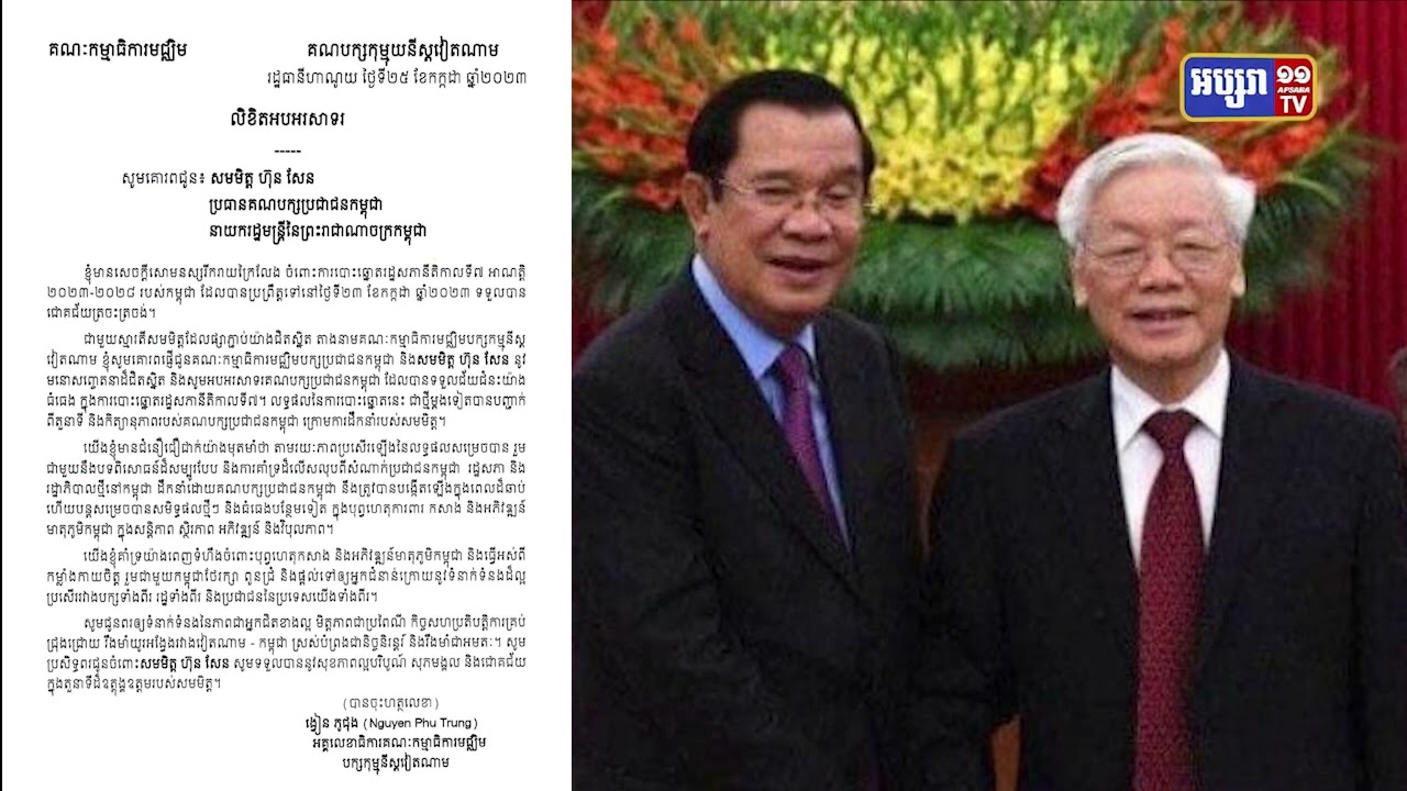 គណបក្សកាន់អំណាចនៃប្រទេសកម្ពុជា និងប្រទេសវៀតណាម បានប្តេជ្ញាពង្រឹងកិច្ចសហប្រតិបត្តិការរវាងប្រទេសទាំង២កាន់តែខ្លាំងក្លានិងជាយូរអង្វែង។ ថ្នាក់ដឹកនាំនៃគណបក្សប្រជាជនកម្ពុជា និងថ្នាក់ដឹកនាំគណបក្សកុម្មុយនីស្តវៀតណាម បានធ្វើលិខិតឆ្លើយឆ្លងគ្នាទៅវិញទៅមកក្នុងសប្តាហ៍នេះ ខណៈដោយគណបក្សកុម្មុយនីស្តវៀតណាម បានអបអរគណបក្សប្រជាជនកម្ពុជា ដែលទទួលបានលទ្ធផលឈ្នះឆ្នោតភ្លូកទឹកភ្លូកដី។ អប្សរាណិតរាយការណ៍