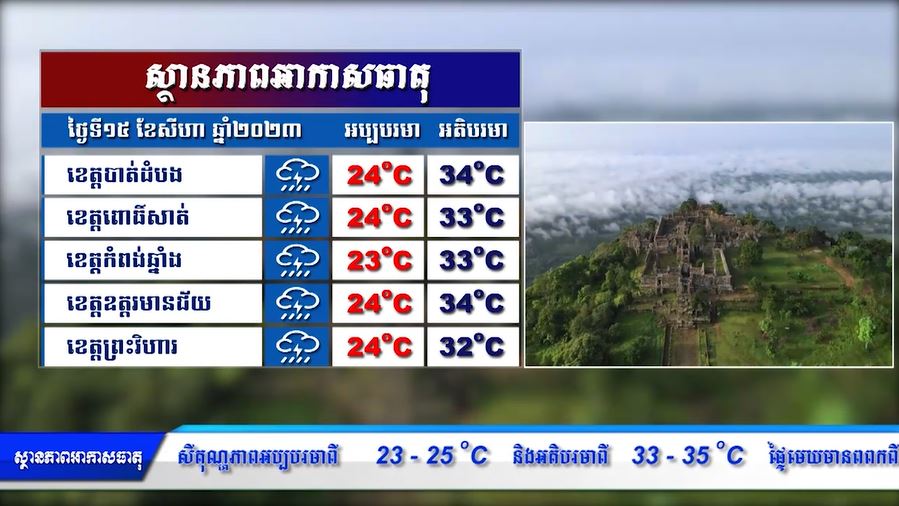 ព្យាករណ៌អាកាសធាតុ សម្រាប់ថ្ងៃទី១៥ សីហា ២០២៣ (មានវីដេអូ)