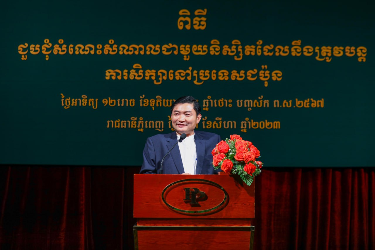 ឯកឧត្តមក៏បានបង្ហាញក្តីសង្ឃឹមផងដែរថា និស្សិតជ័យលាភីទាំងអស់នឹងទទួលបានជោគជ័យក្នុងដំណើរសិក្សានេះ ដើម្បីនាំយកនូវចំណេះដឹង វិលត្រឡប់មកបម្រើការងារនៅកម្ពុជាវិញ ហើយរួមចំណែកក្នុងការអភិវឌ្ឍសង្គម និងសេដ្ឋកិច្ចកម្ពុជា ពិសេសចក្ខុវិស័យក្នុងការប្រែក្លាយកម្ពុជាជាប្រទេសដែលមានចំណូលមធ្យមកម្រិតខ្ពស់ក្នុងឆ្នាំ២០៣០ និងជាប្រទេសដែលមានចំណូលខ្ពស់ក្នុងឆ្នាំ២០៥០។