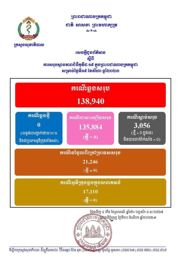 ២. កូវីដ គ្មានករណីថ្មី គ្មានអ្នកជាសះស្បើយ និងគ្មានអ្នកស្លាប់។