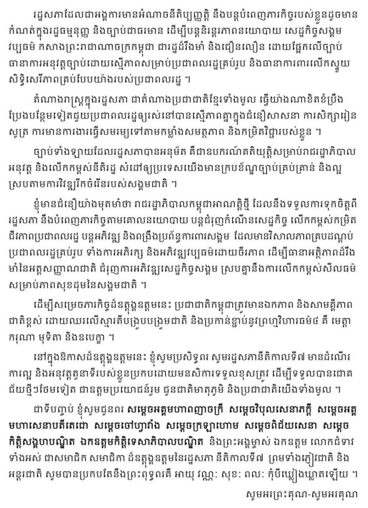 ព្រះរាជសុន្ទរកថា ព្រះករុណាព្រះបាទសម្តេចព្រះបរមនាថ នរោត្តម សីហមុនី ព្រះមហាក្សត្រ នៃព្រះរាជាណាចក្រកម្ពុជា ក្នុងឱកាសបើកសម័យប្រជុំដំបូងនៃរដ្ឋសភា នីតិកាលទី៧
