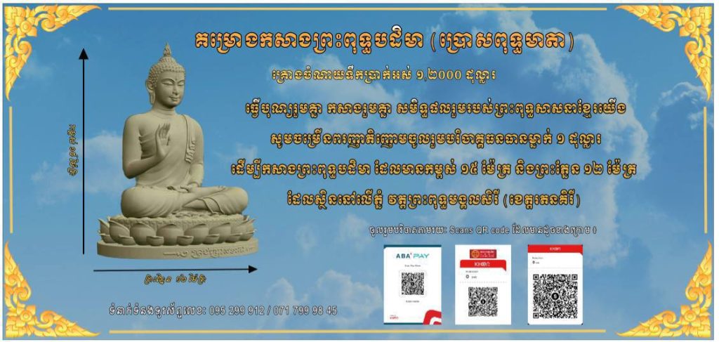 ព្រះចៅអធិការ វត្តព្រះពុទ្ធមង្គលសិរី ស្រុកកូនមុំ អំពាវនាវដល់សប្បុរសជនពុទ្ធិបរិស័ទជួយកសាងព្រះពុទ្ធបដិមាមួយព្រះអង្គ កម្ពស់ ១៥ម៉ែត្រ