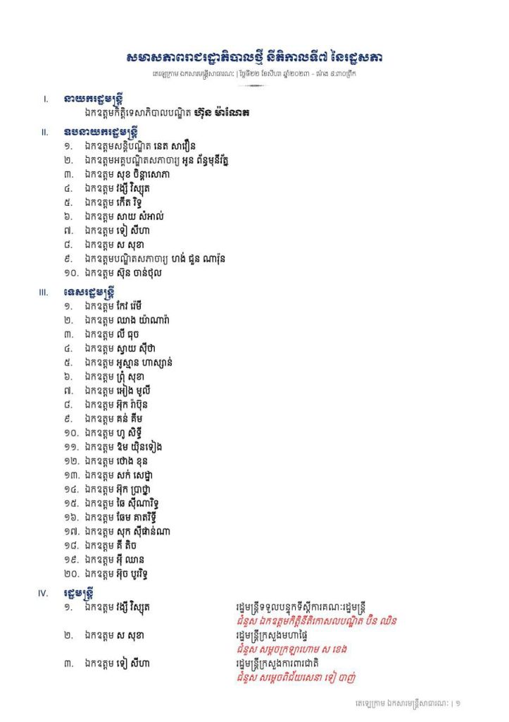 បញ្ជីសមាសភាពរាជរដ្ឋាភិបាលថ្មីដឹកនាំដោយឯកឧត្ដមកិត្តិទេសាភិបាលបណ្ឌិត ហ៊ុន ម៉ាណែតOne-Minuteអត្ថបទដោយ៖AMS OneMinute #ams1minute AMS OneMinuteអត្ថបទមុនអត្ថបទបន្ទាប់