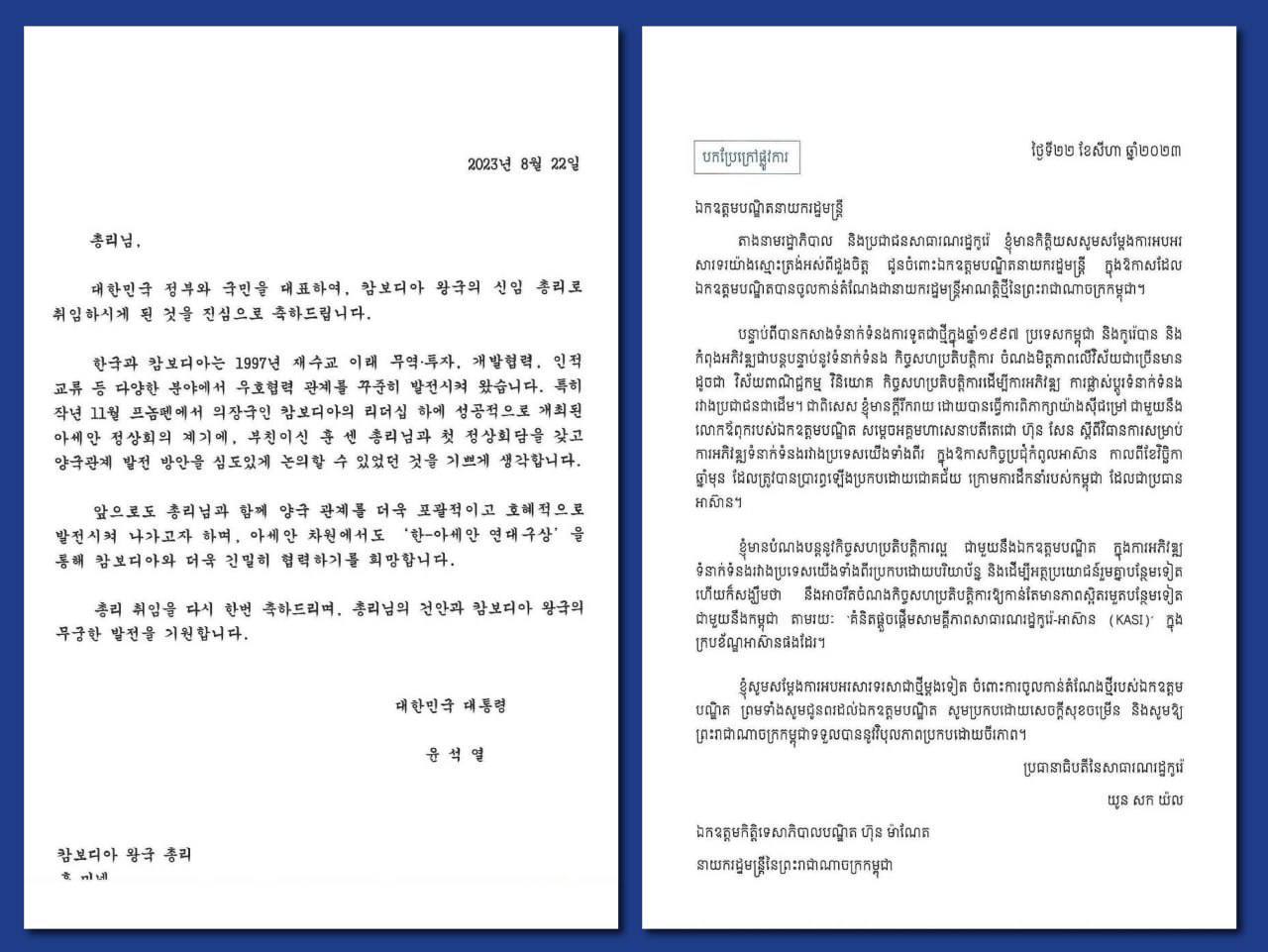 លោក Yoon Suk Yeol ប្រធានាធិបតីនៃសាធារណរដ្ឋកូរ៉េ បានផ្ញើសារលិខិតអបអរសាទរជូន ឯកឧត្តមកិត្តិទេសាភិបាលបណ្ឌិត ហ៊ុន ម៉ាណែត