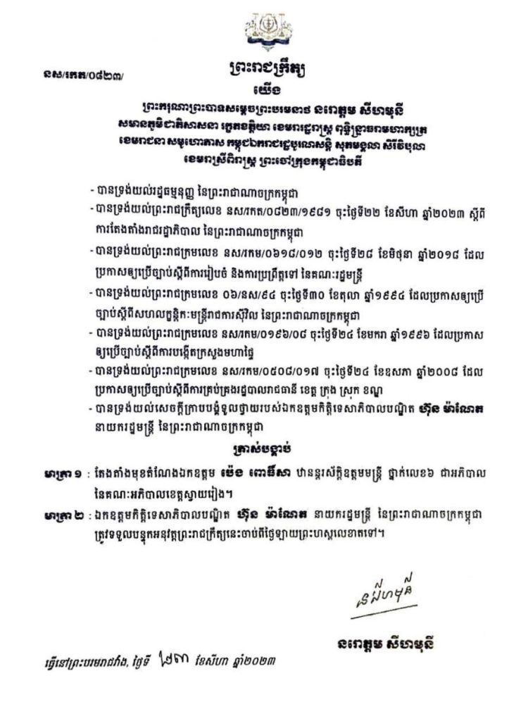 ព្រះមហាក្សត្រ ចេញព្រះរាជក្រឹត្យតែងតាំង ឯកឧត្តម ប៉េង ពោធិ៍សា ជាអភិបាលខេត្តស្វាយរៀងOne-Minuteអត្ថបទដោយ៖AMS OneMinute #ams1minute AMS OneMinuteអត្ថបទមុនអត្ថបទបន្ទាប់