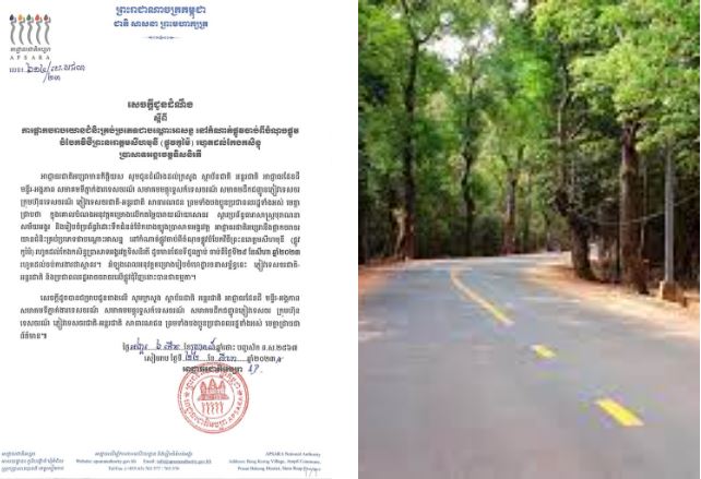 អាជ្ញាធរជាតិអប្សរាប្រកាសផ្អាកចរាចរបណ្តោះអាសន្ន នៅកំណាត់ផ្លូវកូម៉ៃចាប់ពីថ្ងៃទី២៩ ខែសីហា រហូតដល់ចប់ការងារ