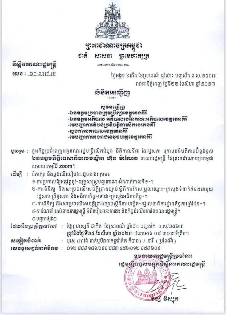 សូមបញ្ជាក់ដែរថា កិច្ចប្រជុំនេះ ក៏នឹងមានការផ្សាយផ្ទាល់នៅលើផេកផ្លូវការ Dr. Hun Manet, Prime Minister of Cambodia រួមទាំងបណ្តាញនានារបស់បណ្តាញព័ត៌មាននានាផងដែរ។
