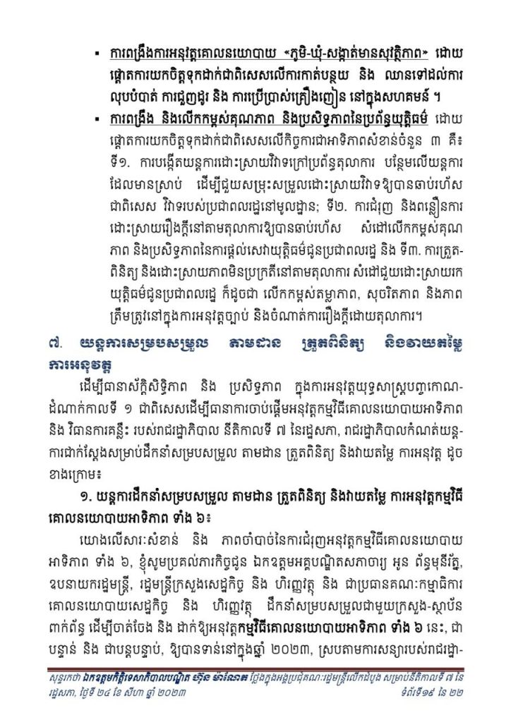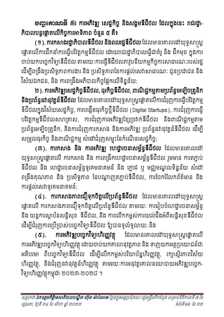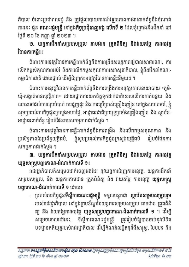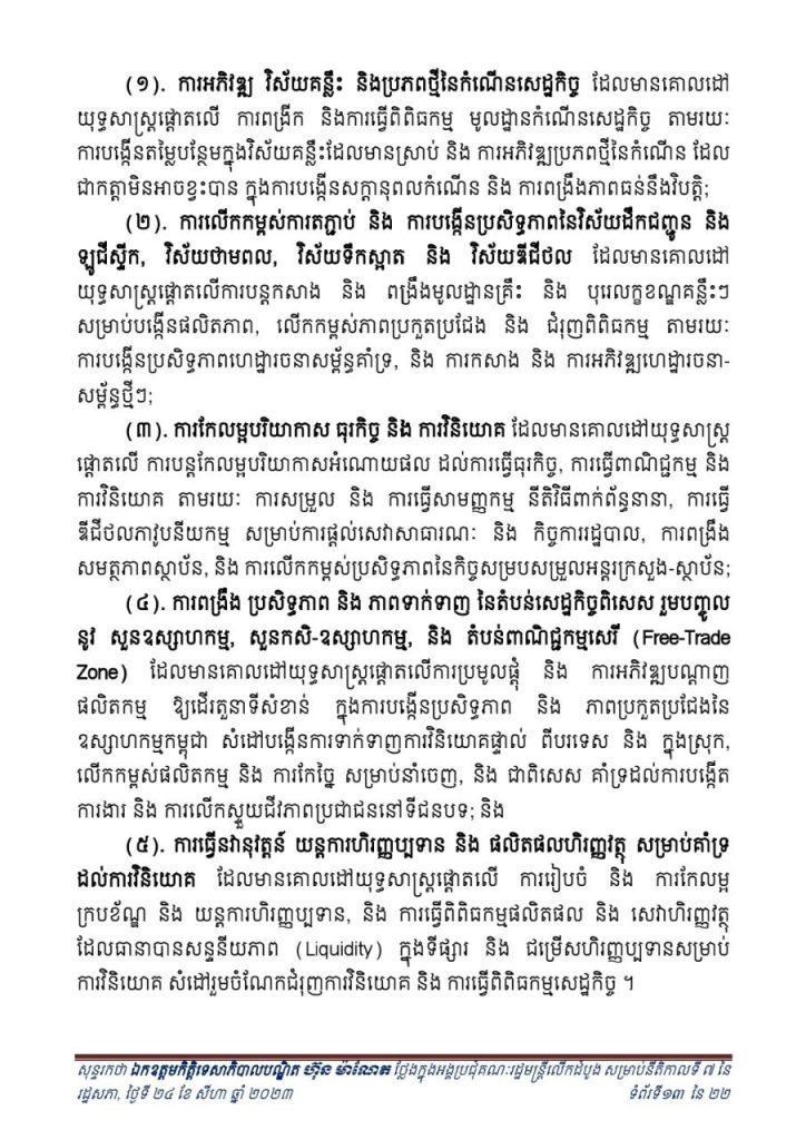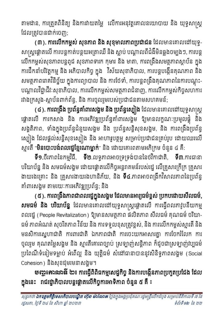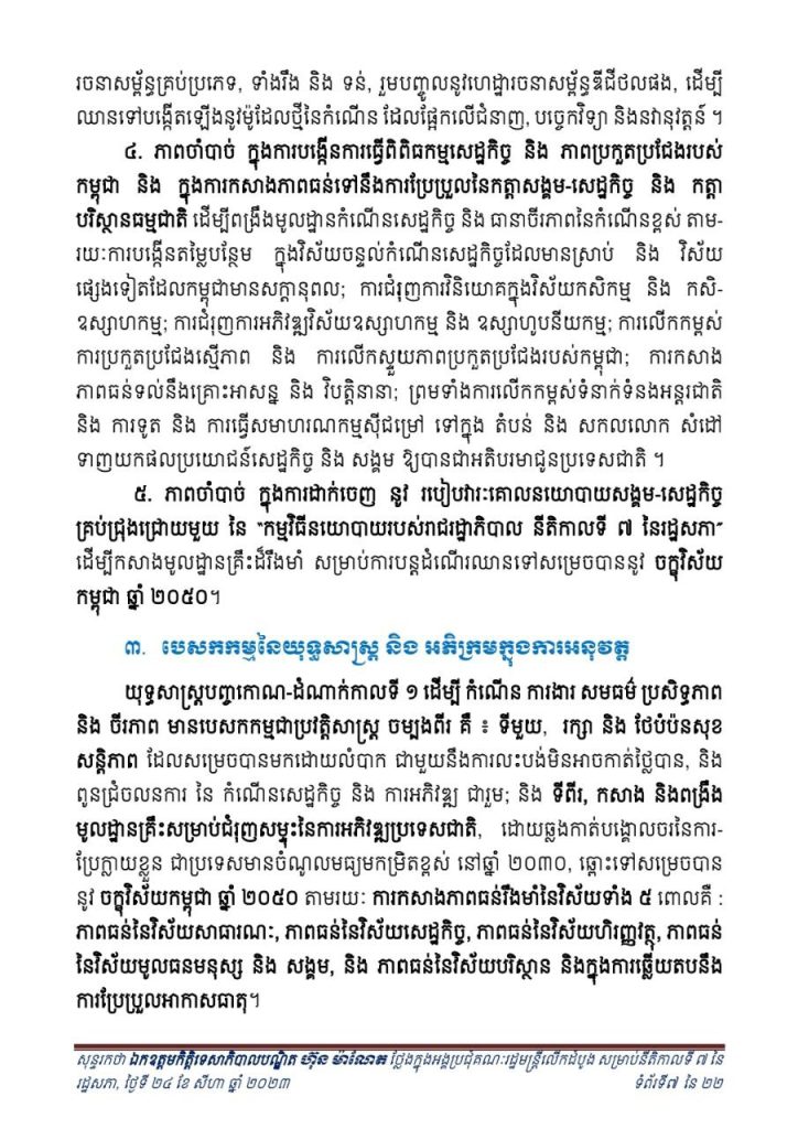 សុន្ទរកថា ឯកឧត្តម កិតិ្តទេសាភិបាលបណ្ឌិត ហ៊ុន ម៉ាណែត នាយករដ្ឋមន្ត្រី នៃព្រះរាជាណាចក្រកម្ពុជា ថ្លែងឧទ្ទេសនាម «យុទ្ធសាស្ត្របញ្ចកោណ-ដំណាក់កាលទី១» និង «វិធានការគន្លឹះរបស់រាជរដ្ឋាភិបាលនីតិកាលទី៧ នៃរដ្ឋសភា» ក្នុងអង្គប្រជុំលើកដំបូង នៃគណៈរដ្ឋមន្ត្រី នីតិកាលទី ៧ នៃរដ្ឋសភា នៅ វិមានសន្តិភាព ព្រឹកថ្ងៃព្រហស្បតិ៍ ទី២៤ សីហា ២០២៣ ៕