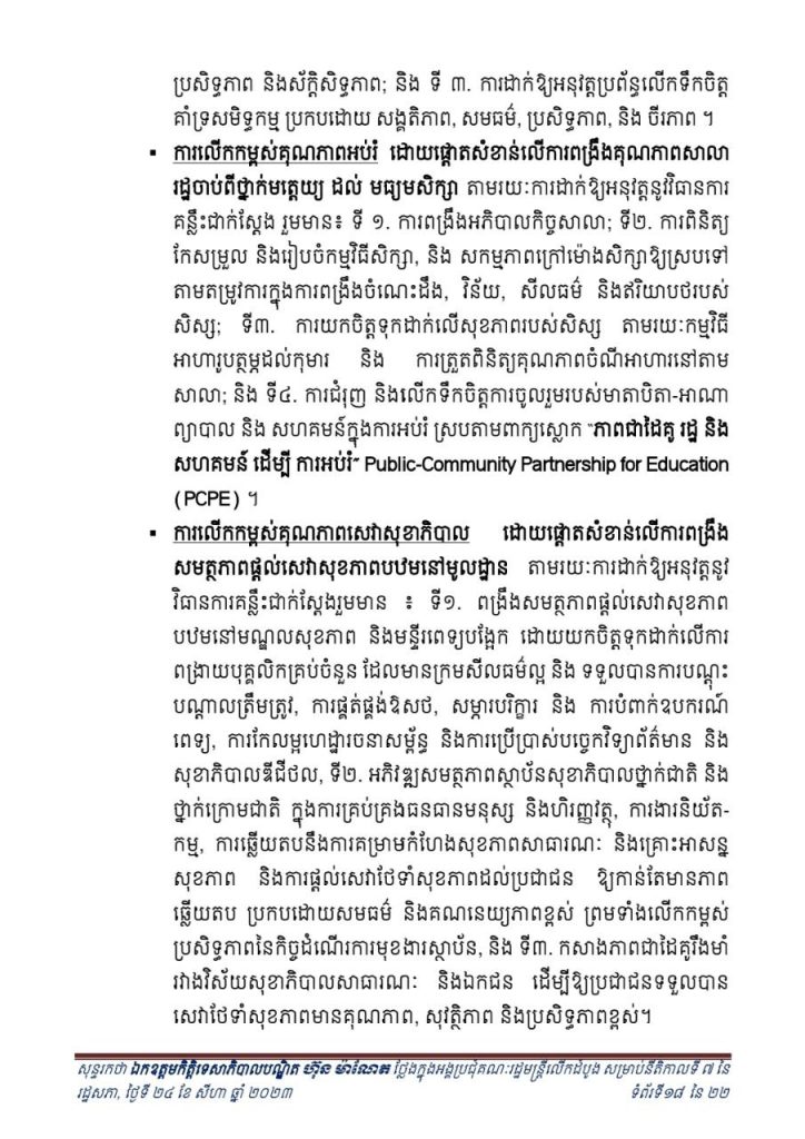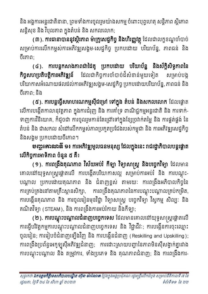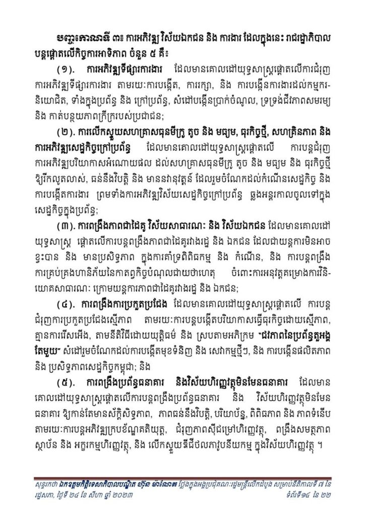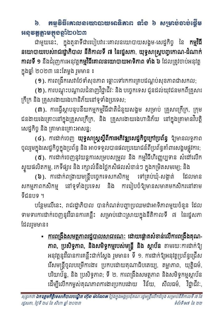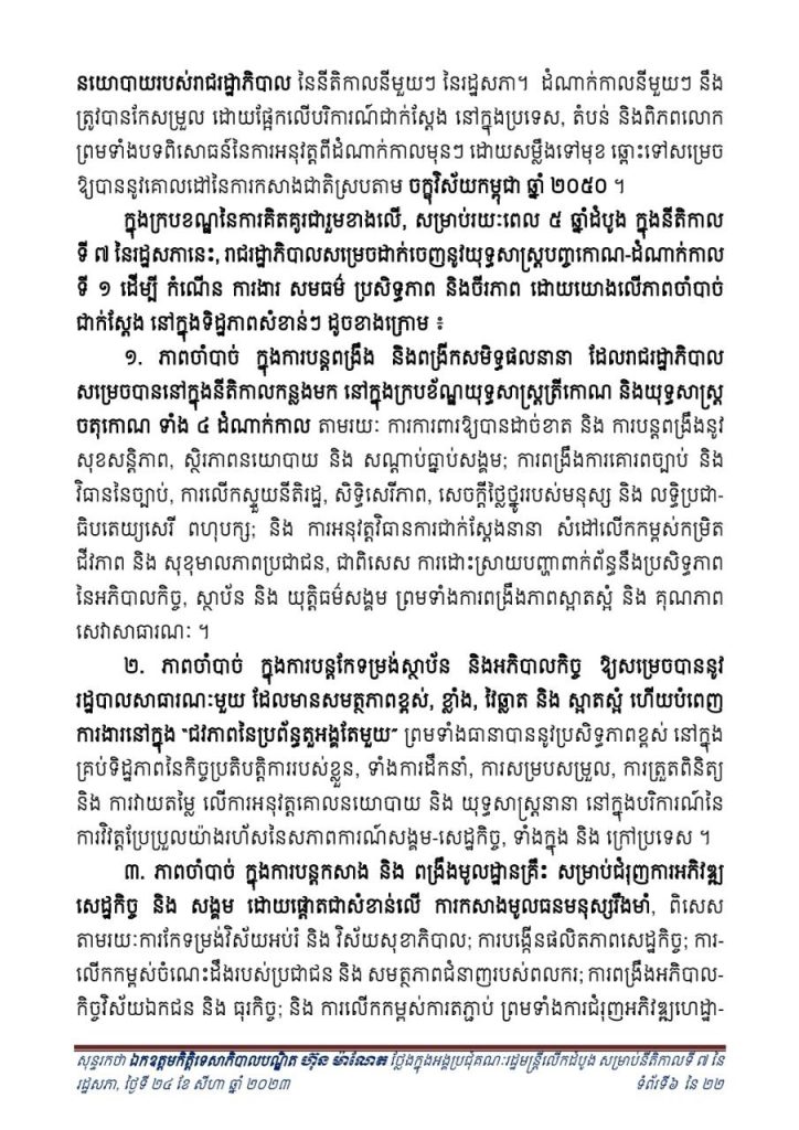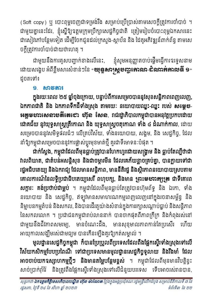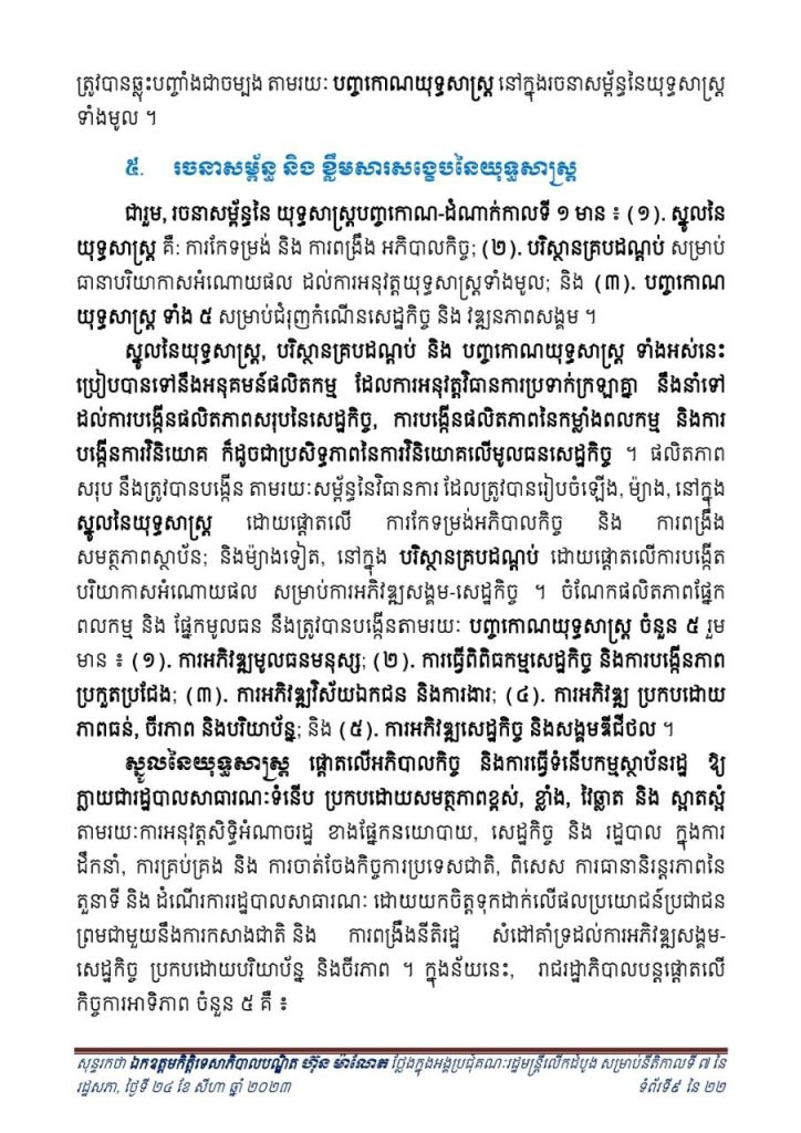សុន្ទរកថា ឯកឧត្តម កិតិ្តទេសាភិបាលបណ្ឌិត ហ៊ុន ម៉ាណែត នាយករដ្ឋមន្ត្រី នៃព្រះរាជាណាចក្រកម្ពុជា ថ្លែងឧទ្ទេសនាម «យុទ្ធសាស្ត្របញ្ចកោណ-ដំណាក់កាលទី១» និង «វិធានការគន្លឹះរបស់រាជរដ្ឋាភិបាលនីតិកាលទី៧ នៃរដ្ឋសភា» ក្នុងអង្គប្រជុំលើកដំបូង នៃគណៈរដ្ឋមន្ត្រី នីតិកាលទី ៧ នៃរដ្ឋសភា នៅ វិមានសន្តិភាព ព្រឹកថ្ងៃព្រហស្បតិ៍ ទី២៤ សីហា ២០២៣ ៕