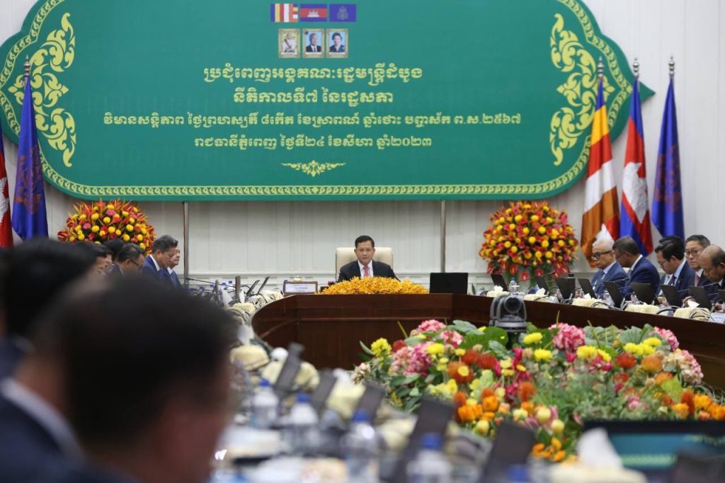 ភ្នំពេញ៖ មានប្រសាសន៍នៅក្នុងឱកាសអញ្ជើញដឹកនាំកិច្ចប្រជុំពេញអង្គគណៈរដ្ឋមន្ត្រីលើកដំបូង សម្រាប់នីតិកាលទី៧ នៃរដ្ឋសភា នៅវិមានសន្តិភាព នាព្រឹកថ្ងៃទី២៤ ខែសីហា ឆ្នាំ២០២៣ ប្រមុខរាជរដ្ឋាភិបាលកមកពុជា ឯកឧត្តម កិត្តិទេសាភិបាលបណ្ឌិត ហ៊ុន ម៉ាណែត បានមានប្រសាសន៍ថា៖ យុទ្ធសាស្ត្របញ្ចកោណ គឺជាយុទ្ធសាស្ត្រសម្លឹងទៅមុខសម្រាប់រយៈពេល ២៥ ឆ្នាំ ដែលត្រូវបានគិតគូរដាក់ចេញ និងអនុវត្ត ៥ ដំណាក់កាលបន្តបន្ទាប់ និងត្រូវបានតម្រង់ និងសម្របសម្រួលទៅតាមកម្មវិធីនយោបាយរបស់រាជ រដ្ឋាភិបាលនៃនីតិកាលនីមួយៗនៃរដ្ឋសភា។