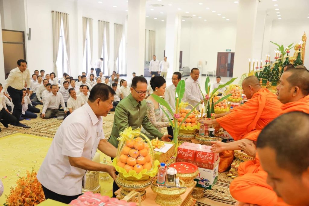 នៅក្នុងពិធីនេះ មាននិមន្តព្រះសង្ឃសូត្រធម៌ប្រោះព្រំ សព្វសាធុការពរ សិរីសួស្តី ជ័យមង្គល វិបុលសុខ បវរមហាប្រសើរ ជូនចំពោះ ឯកឧត្តមរដ្ឋមន្រ្តី និងលោកជំទាវ ព្រមទាំងក្រុមគ្រួសារ ថ្នាក់ដឹកនាំ និងមន្ត្រីរាជការក្រោមឱវាទទាំងអស់ ទទួលបានសេចក្តីសុខចម្រើន សេចក្តីសុខសប្បាយគ្រប់ទីកន្លែង និងឧទ្ទិសបុណ្យកុសល ជូនចំពោះវិញ្ញាណក្ខន្ធបុព្វការីជន និងជនស្នេហាជាតិទាំងអស់ ដែលបានពលីជីវិតក្នុងបុព្វហេតុជាតិមាតុភូមិផងដែរ ។