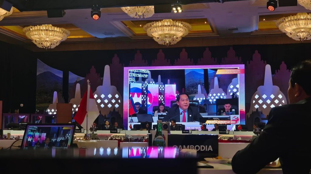 ភ្នំពេញ៖កម្ពុជាបានទៅចូលរួមកិច្ចប្រជុំរួមថ្នាក់រដ្ឋមន្ត្រីហិរញ្ញវត្ថុនិងទេសាភិបាលធនាគារកណ្តាលអាស៊ាន(AFMGM) លើកទី១០ និងកិច្ចប្រជុំពាក់ព័ន្ធ កាលពីថ្ងៃទី២៤-២៥ ខែសីហា ឆ្នាំ២០២៣ នៅទីក្រុងហ្សាការតា ប្រទេសឥណ្ឌូណេស៊ី ។កិច្ចប្រជុំនេះ រំពឹងសម្រេចបានកំណើនសេដ្ឋកិច្ច ល្អប្រសើរក្នុងឆ្នាំ២០២៣នេះ ទោះបីជាកំណើនសេដ្ឋកិច្ចពិភពលោកមានល្បឿនយឺតក៏ដោយ។