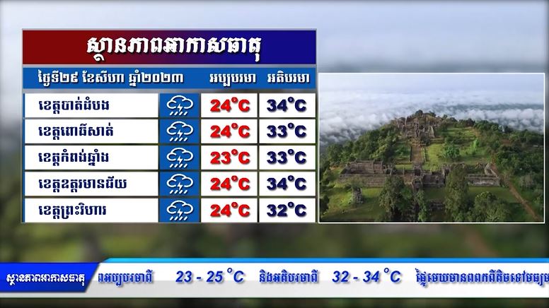ព្យាករណ៌អាកាសធាតុ សម្រាប់ថ្ងៃទី២៩ សីហា ២០២៣ (មានវីដេអូ)