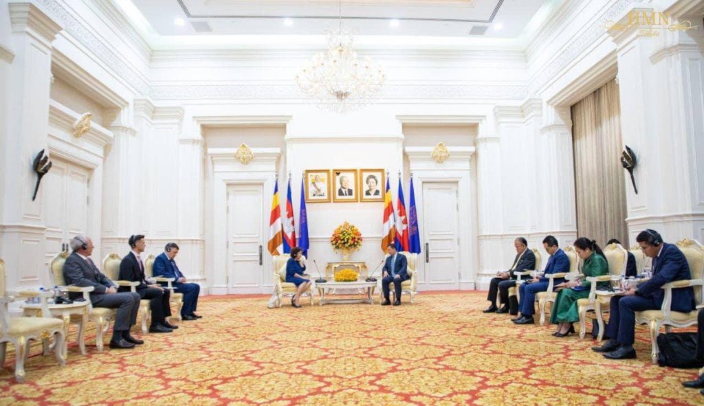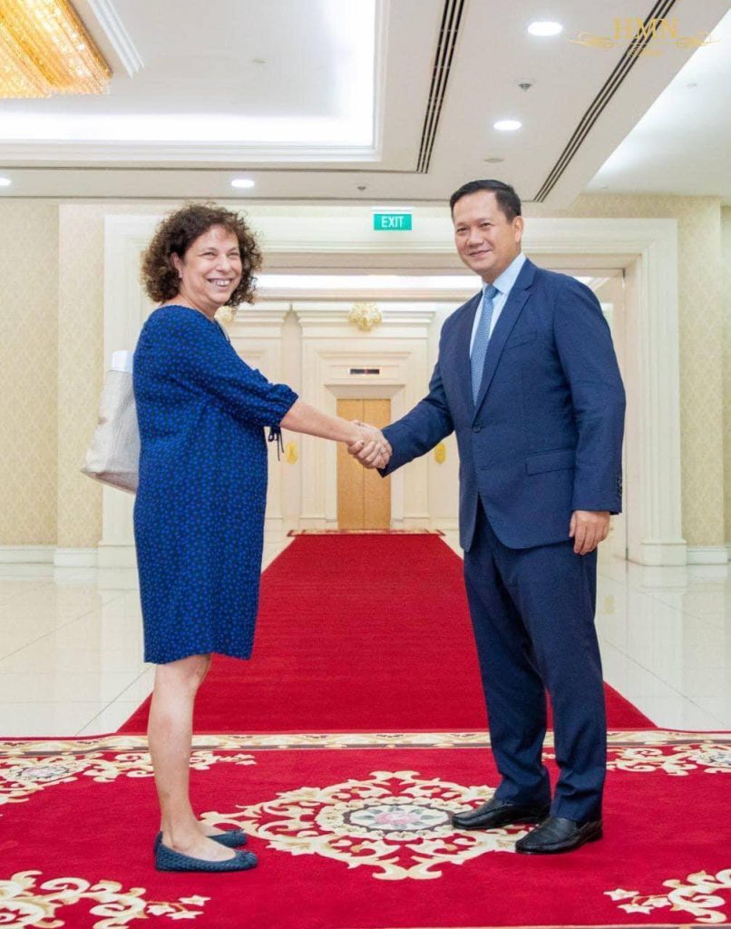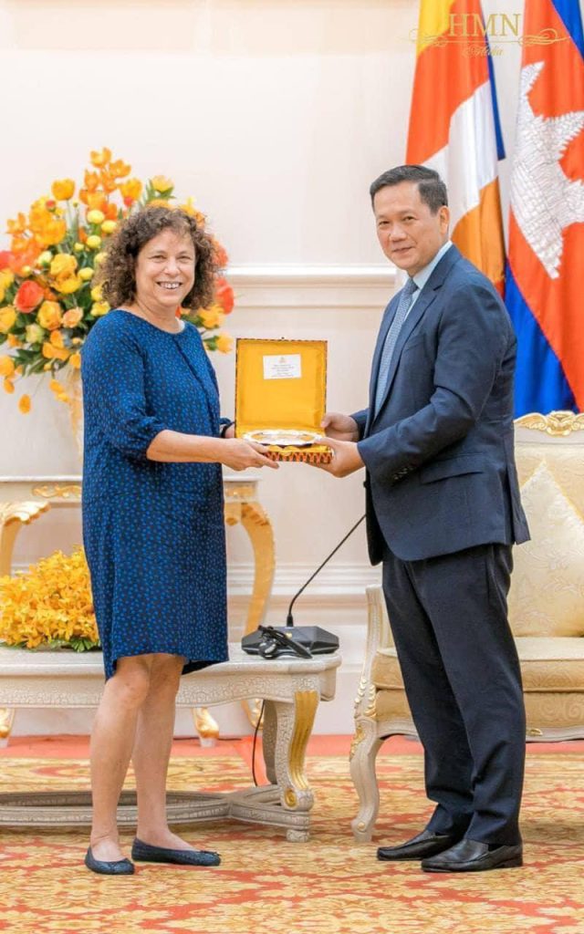 ការអបអរសាទររបស់លោកជំទាវ ម៉ារីយា ដែល ខាមេន ម៉ូរេណូ (Maria Del Carmen Moreno) ឯកអគ្គរដ្ឋទូតសហភាពអឺរ៉ុប ប្រចាំព្រះរាជាណាចក្រកម្ពុជា ដែលចប់អាណត្តិ ក្នុងឱកាសដែលត្រូវបានអនុញាតិឱ្យចូលជួបពិភាក្សាការងារ ជាមួយឯកឧត្តម កិត្តិទេសាភិបាលបណ្ឌិត ហ៊ុន ម៉ាណែត នៅវិមានសន្តិភាព នាព្រឹកថ្ងៃចន្ទ ទី២៨ ខែសីហា ឆ្នាំ២០២៣ ។