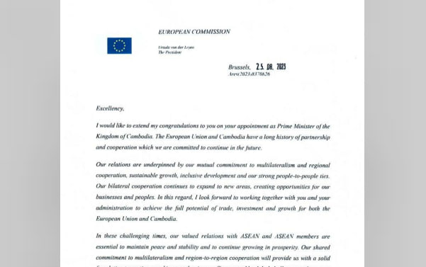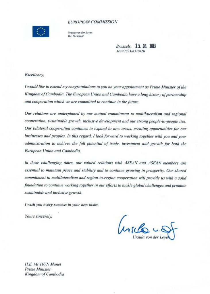 ប្រធានគណៈកម្មការអឺរ៉ុប Ursula Von der Leyen បានផ្ញើសារលិខិតអបអរសាទរជូន ឯកឧត្តមកិត្តិទេសាភិបាលបណ្ឌិត ហ៊ុន ម៉ាណែត សម្រាប់ការចូលកាន់តំណែងជា នាយករដ្ឋមន្ត្រីថ្មីរបស់កម្ពុជា 🇰🇭🇪🇺One-Minuteអត្ថបទដោយ៖AMS OneMinute #ams1minute AMS OneMinuteអត្ថបទមុនអត្ថបទបន្ទាប់