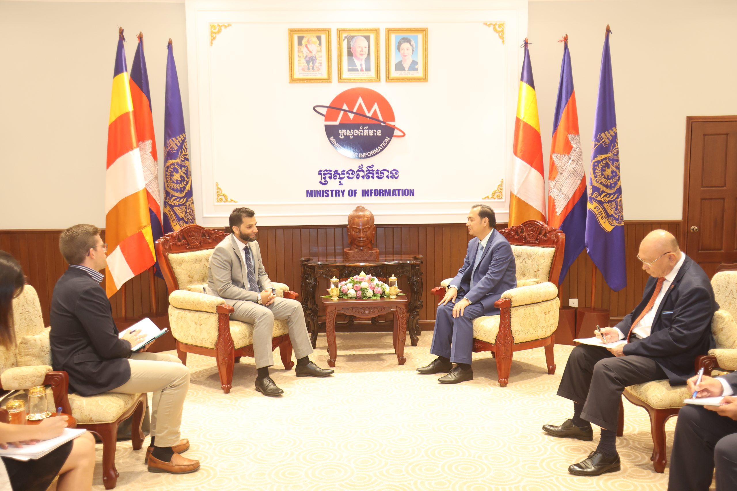 លោក Sardar Umar Alam តំណាងអង្គការ UNESCO ប្រចាំនៅកម្ពុជា បានចែករំលែកទស្សនៈជាមួយឯកឧត្តមរដ្ឋមន្ត្រីក្រសួងព័ត៌មាន និងសន្យាថាចូលរួមសហការជាមួយក្រសួងព័ត៌មានដើម្បីបណ្តុះបណ្តាលធនធានមនុស្ស ក៏ដូចជាការពង្រឹងការគោរពនិងអនុវត្តក្រមសីលធម៌វិជ្ជាជីវៈសារព័ត៌មាន និងចូលរួមសហការការងារផ្សេងៗទៀត៕