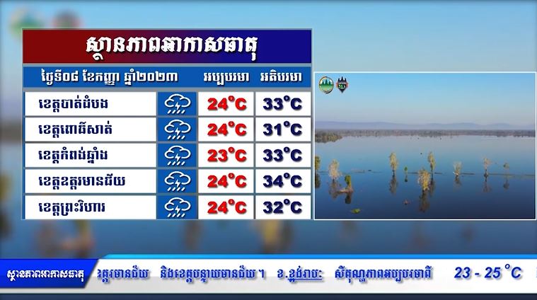 ព្យាករណ៌អាកាសធាតុ សម្រាប់ថ្ងៃទី០៨ កញ្ញា ២០២៣ (មានវីដេអូ)
