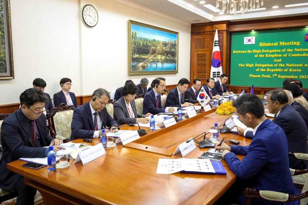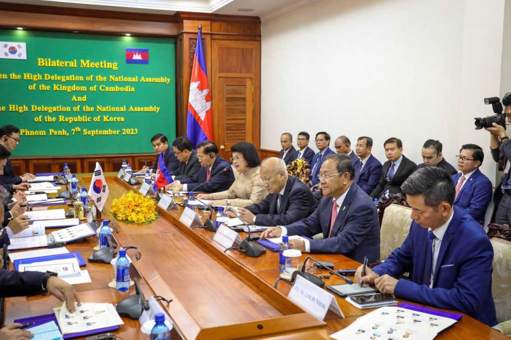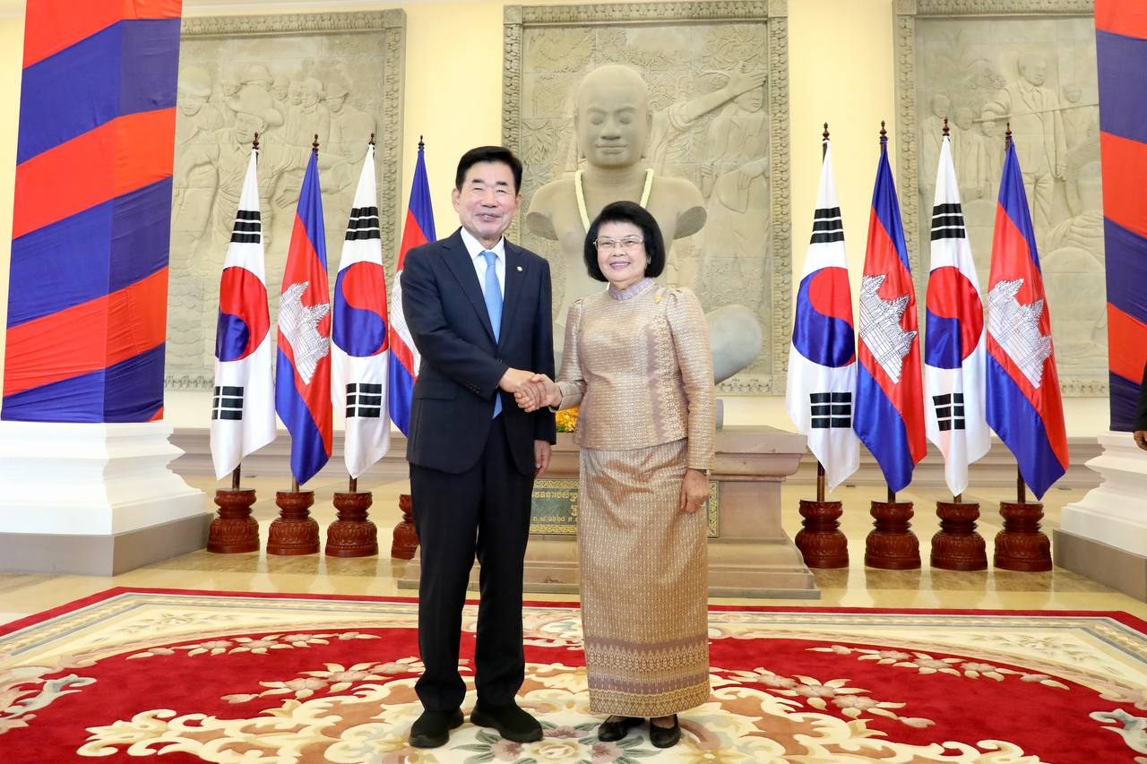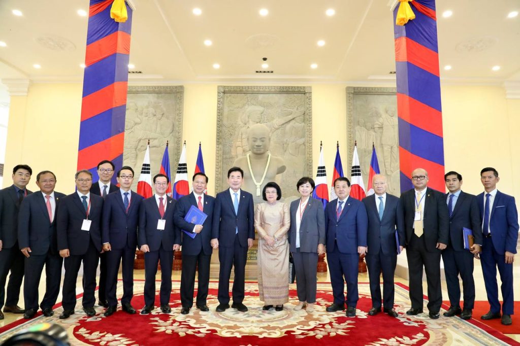 ភ្នំពេញ៖ សម្តេចមហារដ្ឋសភាធិការធិបតី ឃួន សុដារី ប្រធានរដ្ឋសភា នៃព្រះរាជាណាចក្រកម្ពុជា បានស្នើឯកឧត្តម គីម ជីន ព្យូ (Kim Jin Pyo) ប្រធានរដ្ឋសភា នៃសាធារណរដ្ឋកូរ៉េ ជួយជំរុញលើកកម្ពស់ទំនាក់ទំនងកម្ពុជានិងសាធារណរដ្ឋកូរ៉េ ឱ្យកាន់តែរឹងមាំនិងគ្រប់ជ្រុងជ្រោយ ទំាងស្ថាប័ននីតិប្បញ្ញត្តិ និងនីតិប្រតិបត្តិ។ ពោលធ្វើយ៉ាងណាឱ្យទំនាក់ទំនងនៃប្រទេសទំាងពីរ បានឈានដល់ “ដៃគូសហប្រតិបត្តិការយុទ្ធសាស្រ្តគ្រប់ជ្រុងជ្រោយ” រួមទាំងវិនិយោគ និងពាណិជ្ជកម្ម។