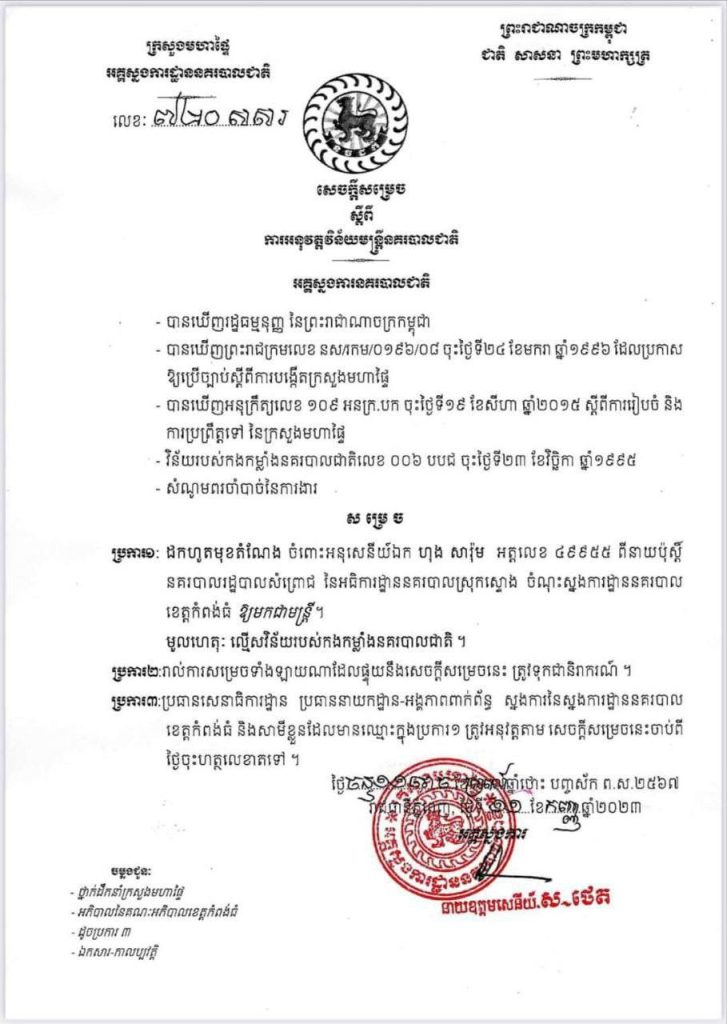 អនុសេនីយ៍ឯក ហុង សារ៉ុម ត្រូវបានដកហូតដំណែងពី នាយប៉ុស្តិ៍នគរបាលរដ្ឋបាលសំព្រោជ នៃអធិការដ្ឋាននគរបាលស្រុកស្ទោង “ឱ្យមកជាមន្ត្រី”One-Minuteអត្ថបទដោយ៖AMS OneMinute #ams1minute AMS OneMinuteអត្ថបទមុនអត្ថបទបន្ទាប់
