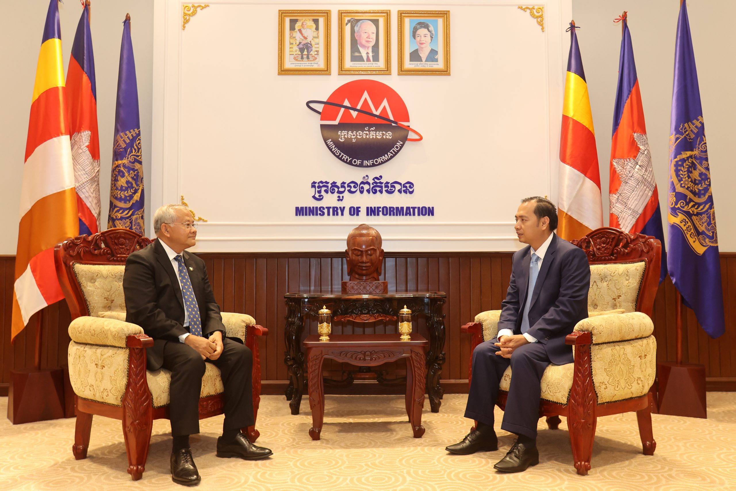 ភ្នំពេញ៖ ឯកឧត្តម នេត្រ ភក្ដ្រា រដ្ឋមន្ដ្រីក្រសួងព័ត៌មាន នៅរសៀលថ្ងៃទី១១ ខែកញ្ញា ឆ្នាំ២០២៣នេះ បានអនុញ្ញាតឲ្យលោកបណ្ឌិត អ៉ិន ចាន់នី ប្រធាននាយកប្រតិបត្តិ ធនាគារ អេស៉ីលីដា ភីអិលស៉ី ចូលជួបសម្ដែងការគួរសម និងពិភាក្សាការងារ នៅទីស្ដីការក្រសួងព័ត៌មាន។