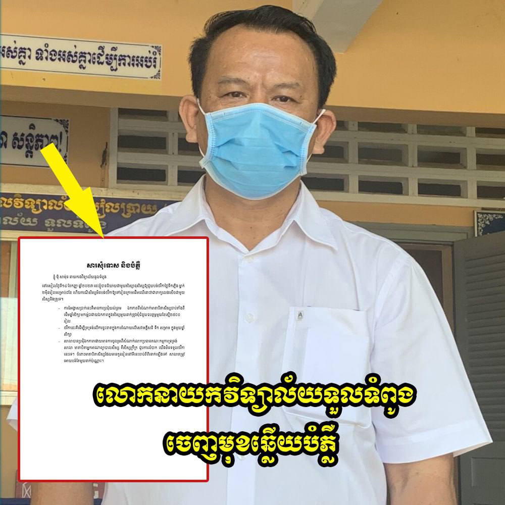 នាយកវិទ្យាល័យទួលទំពូង ចេញមុខឆ្លើយបំភ្លឺ ករណីឲ្យសិស្សជួយ ចេញថ្លៃទឹកភ្លើងម្នាក់ ២ម៉ឺនរៀល បើមិនបង់នាំគ្នាទៅរៀនក្រោមដើមឈើ
