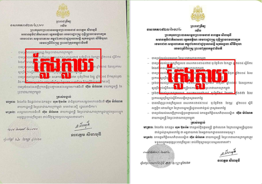 ខុទ្ទកាល័យសម្តេចមហាបវរធិបតី៖ មានជនខិលខូចបានក្លែងព្រះរាជក្រឹត្យដែលមានព្រះហស្ថលេខារបស់ព្រះមហាក្សត្រ
