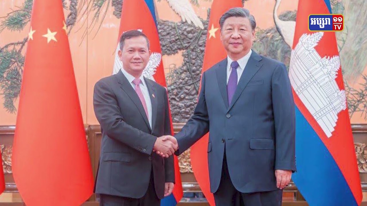 ប្រធានាធិបតីចិនលោក ស៊ី ជីនពីង បានជួបជាមួយសម្តេចមហាបវរធិបតី ហ៊ុន ម៉ាណែត នៅថ្ងៃសុក្រ ទី១៥ កញ្ញា និងបានចាត់ទុកដំណើររបស់ប្រមុខថ្មីដឹកនាំរាជរដ្ឋាភិបាល កាន់តែបានលើកកម្ពស់កាន់តែខ្លាំងនូវទំនាក់ទំនងរវាងប្រទេសចិន និងកម្ពុជា «ឱ្យកាន់តែមានលក្ខណៈស៊ីជម្រៅ និងកាន់តែជាក់លាក់ពិតប្រាកដ»។ សម្តេចបវរធិបតី ហ៊ុន ម៉ាណែត បានដឹកនាំគណៈប្រតិភូរាជរដ្ឋាភិបាលថ្មីជាលើកដំបូង បំពេញទស្សនកិច្ចក្នុងប្រទេសចិនតបតាមការអញ្ជើញរបស់នាយករដ្ឋមន្ត្រីចិន លោក លី ឈាង។ ដំណើរបំពេញទស្សនកិច្ចបួនថ្ងៃចាប់ផ្តើមពីថ្ងៃទី១៤ កញ្ញា ក៏នឹងរួមមានទាំងការអញ្ជើញចូលរួមពិព័រណ៍អាស៊ានចិនលើកទី២០ នៅទីក្រុងណាននីង តំបន់ស្វយ័តជនជាតិក្វាងស៊ី។ អប្សរាណិតរាយការណ៍