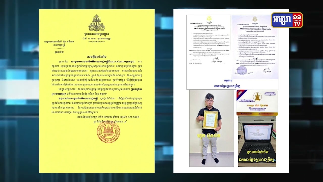 សមត្ថកិច្ចចាប់ខ្លួនបុគ្គល «ហុក ប៊ុនរ៉េត» ដែលក្លែងព្រះរាជសារព្រះមហាក្សត្រ (Video Inside)