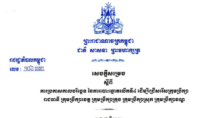 រាជរដ្ឋាភិបាល សម្រេចកំណត់យកថ្ងៃទី២៦ ឧសភា ២០២៤ ដើម្បីបោះឆ្នោតជ្រើសរើសក្រុមប្រឹក្សារាជធានី ខេត្ត ក្រុង ស្រុក និងខណ្ឌលើកទី៤One-Minuteអត្ថបទដោយ៖AMS OneMinute សេចក្ដីសម្រេច_ស្ដីពី_កាប្រកាសកាលបរិច្ឆេទ_នៃការបោះឆ្នោតលើកទី៤_ដើDownload #ams1minute AMS OneMinuteអត្ថបទមុនអត្ថបទបន្ទាប់