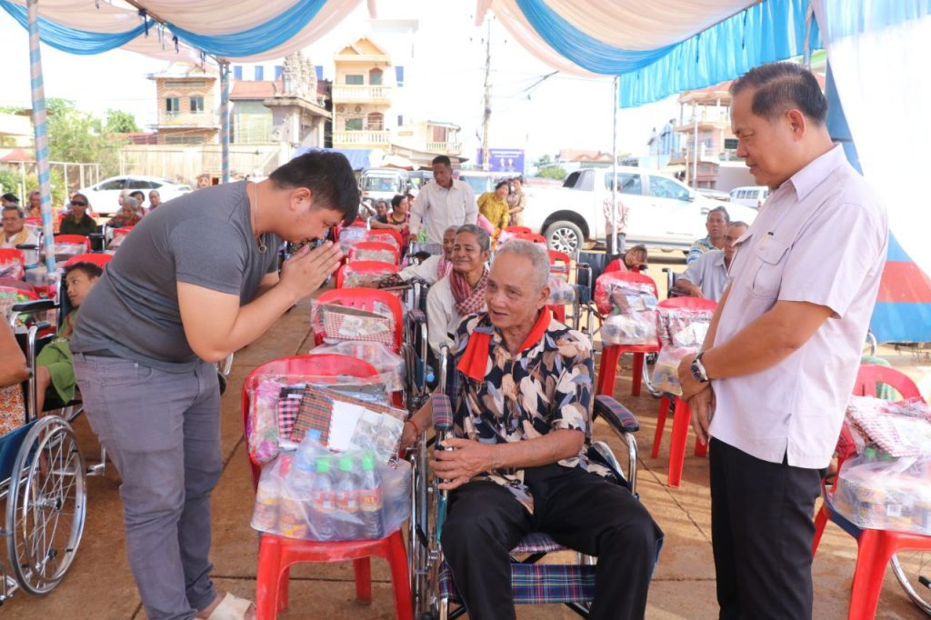 លោកអភិបាលបានឲ្យដឹងថា ដោយមើលឃើញពីការលំបាក របស់បងប្អូនជនពិការក៏ដូចជាអាណាព្យាបាលដែល កំពុងចិញ្ចឹមបីបាច់កូនចៅពិការភាពរស់នៅក្នុងបន្ទុក លោក លី គីមឆេង និងក្រុមគ្រួសារ បានចូលរួមជាមួយអាជ្ញាធរក្នុងការចែកជូនជារទេះរុញដល់ជនពិការក្រីក្រ ដើម្បីជួយសម្រាលការលំបាកខ្លះជូនក្រុមគ្រួសារ និងសាមីខ្លួន។ការចែកជូននាពេលនេះ ធ្វើឡើងដើម្បីឆ្លើយតបទៅនឹង រាជរដ្ឋាភិបាលកម្ពុជា បានដាក់ចេញនូវយុទ្ធសាស្រ្តជាតិស្តីពីពិការភាព ដោយបានចែងយ៉ាងច្បាស់អំពីការផ្តល់ជូនជនពិការ នូវសេវាសុខភាពប្រកបដោយគុណភាព និងសមត្ថភាព ព្រមទាំងស្តារលទ្ធភាពពលកម្ម កាយសម្បទា និងសតិបញ្ញា។
