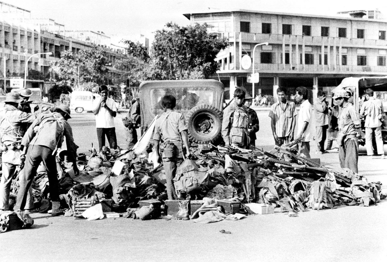 រូបថតថ្ងៃទី១៧ ខែមេសា ឆ្នាំ១៩៧៥ នៅក្នុងទីក្រុងភ្នំពេញ ដែលទាហានរបស់ឧត្តមសេនីយ៍ លន់ នល់ នាំគ្នាទម្លាក់អាវុធចុះ បន្ទាប់ពីពួកគេប្តូរវេន ខណៈខ្មែរក្រហមសម្រុកចូលទីក្រុងភ្នំពេញ បើតាមឯកសារមួយចំនួនបញ្ជាក់ថាពេលនោះមានការប្រកាសតាមរយៈវិទ្យុជាតិថាការចរចាបានបញ្ចប់សង្គ្រាម ហើយឲ្យកងទ័ពគ្រប់ផ្នែកដាក់អាវុធចុះក្អែកខ្មៅសច្ចធម៌ប្រវត្តិសាស្ត្រអត្ថបទដោយ៖លី ប៊ុនហេង - Ly Bunheng #សច្ចធម៌ប្រវត្ដិសាស្រ្ដ #ព្រះរាជាណាចក្រកម្ពុជា #ក្អែកខ្មៅ #ខ្មែរក្រហម #លន់នល់ #ទាហាន #ទីក្រុងភ្នំពេញ Facebook Page: សច្ចធម៌ប្រវត្ដិសាស្រ្ដTo all social media លី ប៊ុនហេង - Ly Bunhengលី ប៊ុនហេង ប្រធានផ្នែកផ្សព្វផ្សាយ នៃសច្ចធម៌ប្រវត្តិសាស្រ្ដអត្ថបទមុនអត្ថបទបន្ទាប់