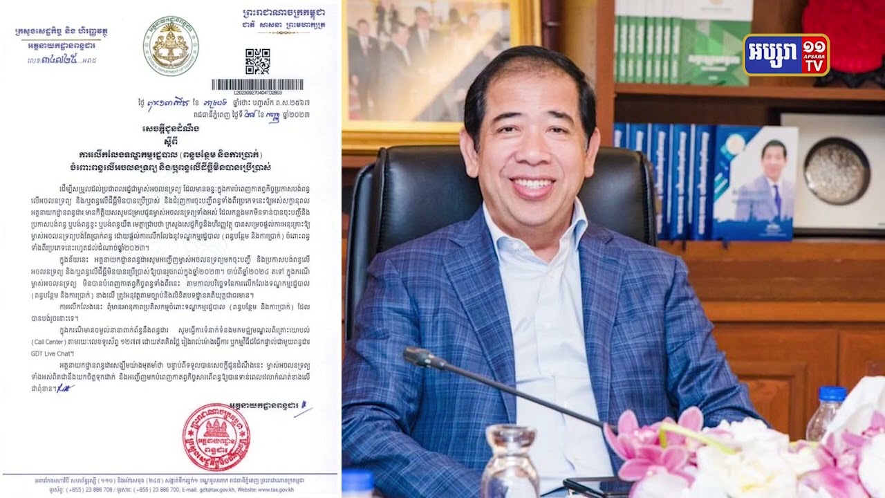 អគ្គនាយកដ្ឋានពន្ធដាលើកលែងទណ្ឌកម្មរដ្ឋបាលលើពន្ធលើអចលនទ្រព្យ និងពន្ធដីធ្លីមិនបានប្រើប្រាស់រហូតដល់ចុងឆ្នាំ២០២៣ (Video Inside)