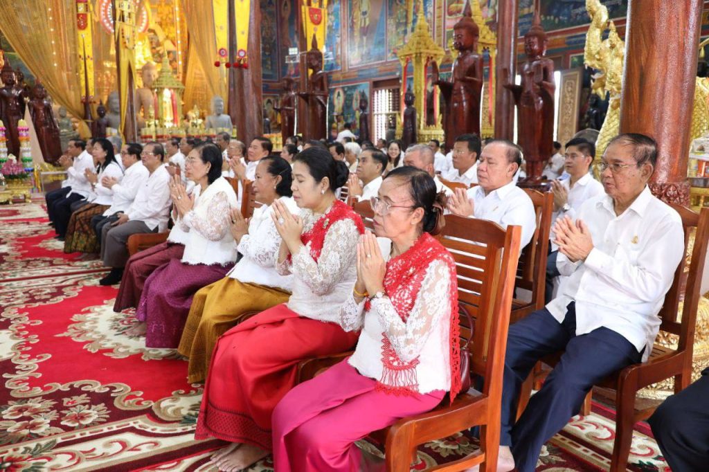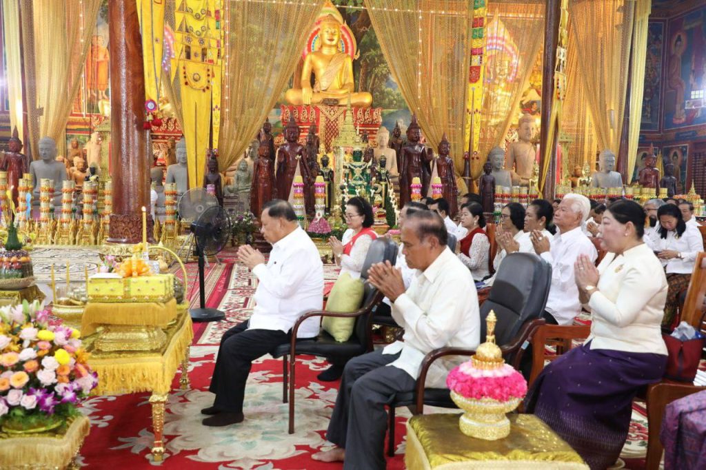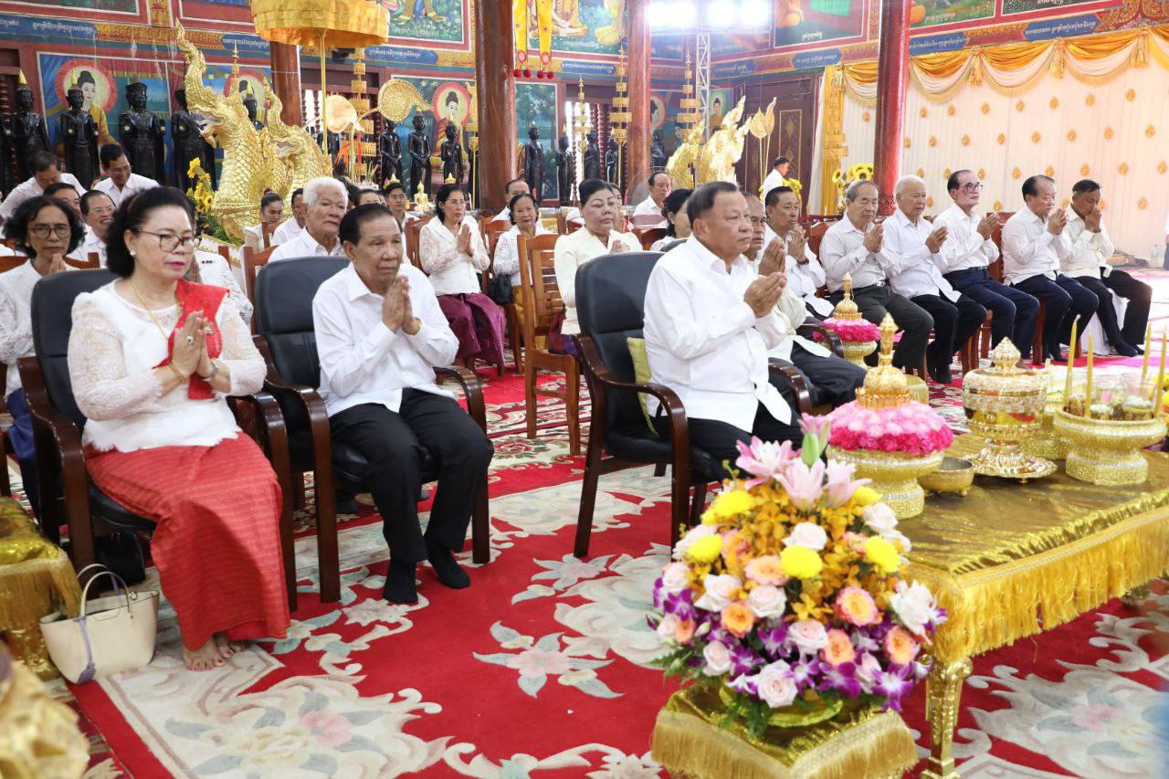 នាឱកាសដ៏ថ្លៃថ្លានេះ សម្តេចវិបុលសេនាភក្តី សាយ ឈុំ ប្រធានព្រឹទ្ធសភានៃព្រះរាជាណាចក្រកម្ពុជា ឯកឧត្តមកិត្តិនីតិកោសលបណ្ឌិត ស៊ឹម កា អនុប្រធានទី១ព្រឹទ្ធសភា ឯកឧត្តមកិត្តិសង្គហបណ្ឌិត ទេព ងន អនុប្រធានទី២ព្រឹទ្ធសភា និងសមាជិក សមាជិកាព្រឹទ្ធសភា ព្រមទាំងថ្នាក់ដឹកនាំនៃអគ្គលេខាធិការដ្ឋានព្រឹទ្ធសភា បានអញ្ជើញថ្វាយនូវគ្រឿងសក្ការៈបូជា ទៀន ធូប ផ្កាភ្ញី និងប្រារព្ធកិច្ចបទនមស្ការព្រះរតនត្រ័យ សមាទាននិច្ចសីល និមន្តព្រះសង្ឃសូត្រព្រះធម៌ស្វាធ្យាយ ចម្រើនព្រះបរិត្ត និងពុទ្ធជ័យមង្គល ព្រមទាំងនាំយកចង្ហាន់ ទេយ្យទាន គ្រឿងបរិក្ខារ រាប់បាត្រ វេប្រគេនព្រះសង្ឃ ឧទ្ទិសមហាកុសលជូនដួងវិញ្ញាណក្ខន្ធញាតិការទាំងប្រាំពីរសន្តាន ឥស្សរជន និងយុទ្ធជន ដែលបានពលីជីវិត ដើម្បីជាតិមាតុភូមិ ជាពិសេសដល់ដួងវិញាណក្ខន្ធរបស់សម្តេចអគ្គមហាធម្មពោធិសាល ជា ស៊ីម និងលោកជំទាវ ញ៉ែម សឿន ជា ស៊ីម សម្តេច ស៊ីសុវត្ថិ ជីវ័នមុនីរ័ក្ស និងឯកឧត្តម នៃ ប៉េណា ដែលបានទទួលមរណកាលទៅកាន់លោកខាងមុខទៅហើយនោះ សូមឱ្យជួបប្រកបតែវិបុលសុខគ្រប់ប្រការ និងទៅកាន់សុខគតិភពកុំបីឃ្លៀងឃ្លាតឡើយ។