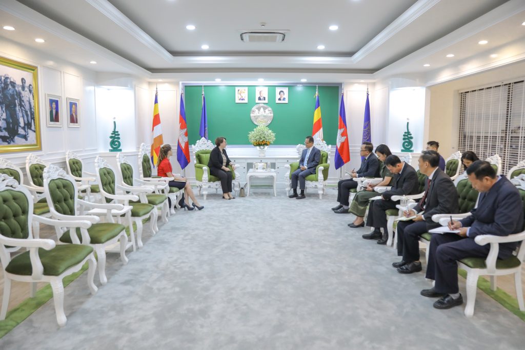 ភ្នំពេញ៖ លោកជំទាវ Ulku Kocaefe ឯកអគ្គរដ្ឋទូតសាធារណរដ្ឋតួគី បានជម្រាបជូនឯកឧត្តមបណ្ឌិត អ៊ាង សុផល្លែត រដ្ឋមន្រ្តីក្រសួងបរិស្ថានថា ទួគីត្រៀមខ្លួនជាស្រេចដើម្បីសហការជាមួយកម្ពុជា លើកិច្ចការបរិស្ថានក្នុងតំបន់ ក៏ដូចជានៅថ្នាក់អន្តរជាតិ។ តួគីគឺជាសមាជិកសហភាពអឺរ៉ុប ដែលបានបង្កើតកិច្ចព្រមព្រៀងបៃតង(GREEN DEAL) ដែលផ្តោតជាសំខាន់លើការឆ្លើយតបនឹងការប្រែប្រួលអាកាសធាតុ ការគ្រប់គ្រងសំណល់ និងការអភិរក្សជីវៈចម្រុះ។ ការថ្លែងឡើងរបស់លោកជំទាវឯកអគ្គរដ្ឋទូតសាធារណរដ្ឋតួគី គឺធ្វើឡើងក្នុងជំនួបសម្តែងការគួរសម និងពិភាក្សាការងារជាមួយឯកឧត្តមរដ្ឋមន្រ្តីក្រសួងបរិស្ថាន នៅរសៀលថ្ងៃចន្ទ ទី០២ តុលា ឆ្នាំ២០២៣ នាទីស្តីការក្រសួង ។
