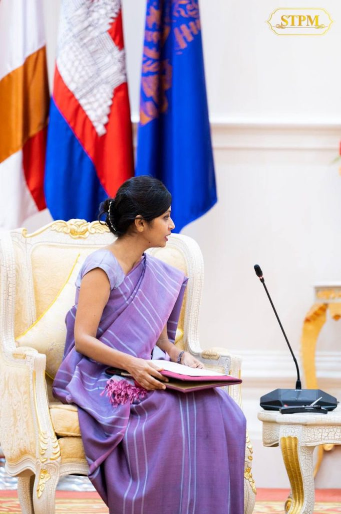 ក្នុងឱកាសនោះដែរ លោកជំទាវឯកអគ្គរដ្ឋទូត ក៏បានគោរពអញ្ជើញ សម្តេចធិបតី ទៅបំពេញទស្សនកិច្ចផ្លូវការនៅសាធារណរដ្ឋឥណ្ឌា ជាថ្មីម្តងទៀត ដើម្បីពង្រឹង និងពង្រីកទំនាក់ទំនងរវាងប្រទេស និងប្រជាជនទាំងពីរ ឱ្យកាន់តែស្និទ្ធស្នាល និងឋិតថេរ ៕