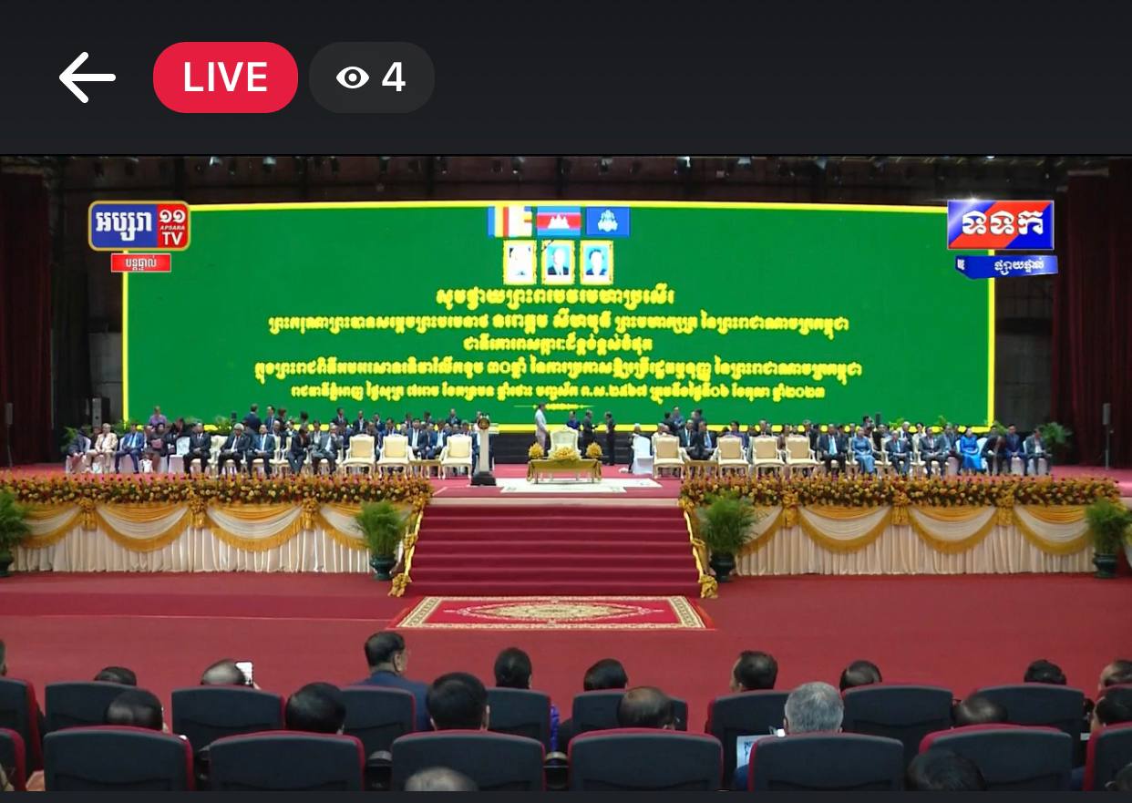 ផ្សាយបន្តផ្ទាល់ ៖ ព្រះករុណាព្រះបាទសម្តេចព្រះបរមនាថ នរោត្តម សីហមុនី ព្រះមហាក្សត្រនៃព្រះរាជាណាចក្រកម្ពុជា ស្តេចយាងជាព្រះរាជាធិបតីដ៏ខ្ពង់ខ្ពស់បំផុត ក្នុងព្រះរាជពិធីអបអរសាទរទិវារំលឹកខួប ៣០ឆ្នាំ នៃការប្រកាសឲ្យប្រើរដ្ឋធម្មនុញ្ញនៃព្រះរាជាណាចក្រកម្ពុជា ។