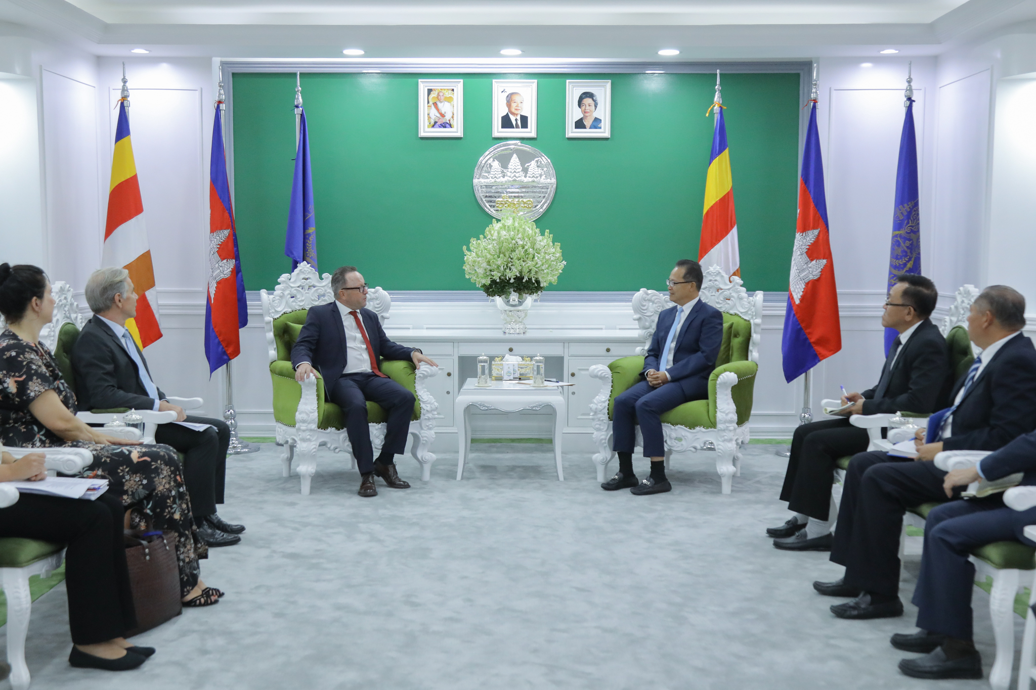 ភ្នំពេញ៖ ឯកឧត្តម Stefan Messerer ឯកអគ្គរដ្ឋទូតអាល្លឺម៉ង់ប្រចាំនៅកម្ពុជាបានថ្លែងថា អាល្លឺម៉ង់នឹងរួមចំណែកក្នុងការពង្រឹងវិស័យបរិស្ថានលើការគ្រប់គ្រងសំណល់រឹង រាវ និងបច្ចេកទេសកែច្នៃសំណល់ទាំងនោះឡើងវិញ ។ ឯកឧត្តមឯកអគ្គរដ្ឋទូតអាល្លឺម៉ង់ប្រចាំនៅកម្ពុជាថ្លែងយ៉ាងដូច្នេះ នៅក្នុងជំនួបសម្តែងការគួរសម និងពិភាក្សាការងារជាមួយឯកឧត្តមរដ្ឋមន្រ្តីក្រសួងបរិស្ថាន នៅរសៀលថ្ងៃទី ០៥ តុលា ឆ្នាំ២០២៣ នាទីស្តីការក្រសួង ។
