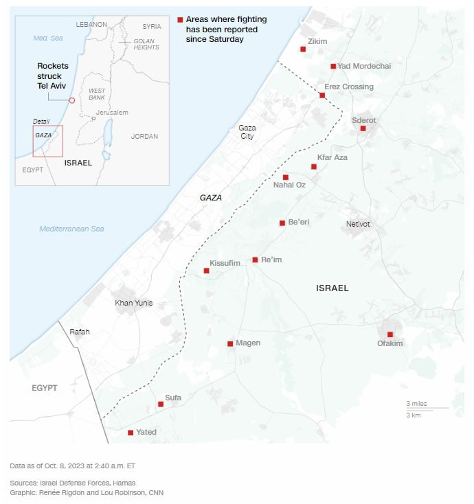 ចំណុចក្រហម ជាតំបន់ប្រយុទ្ធរវាងក្រុមហាម៉ាស់នៃប្រទេសប៉ាឡេស្ទីន និងកងទ័ពអ៉ីស្រាអែល អំឡុងថ្ងៃទី៧-៨ តុលា ២០២៣One-Minuteព័ត៌មានអន្តរជាតិអត្ថបទដោយ៖AMS OneMinute – CNN #ams1minute AMS OneMinuteអត្ថបទមុនអត្ថបទបន្ទាប់