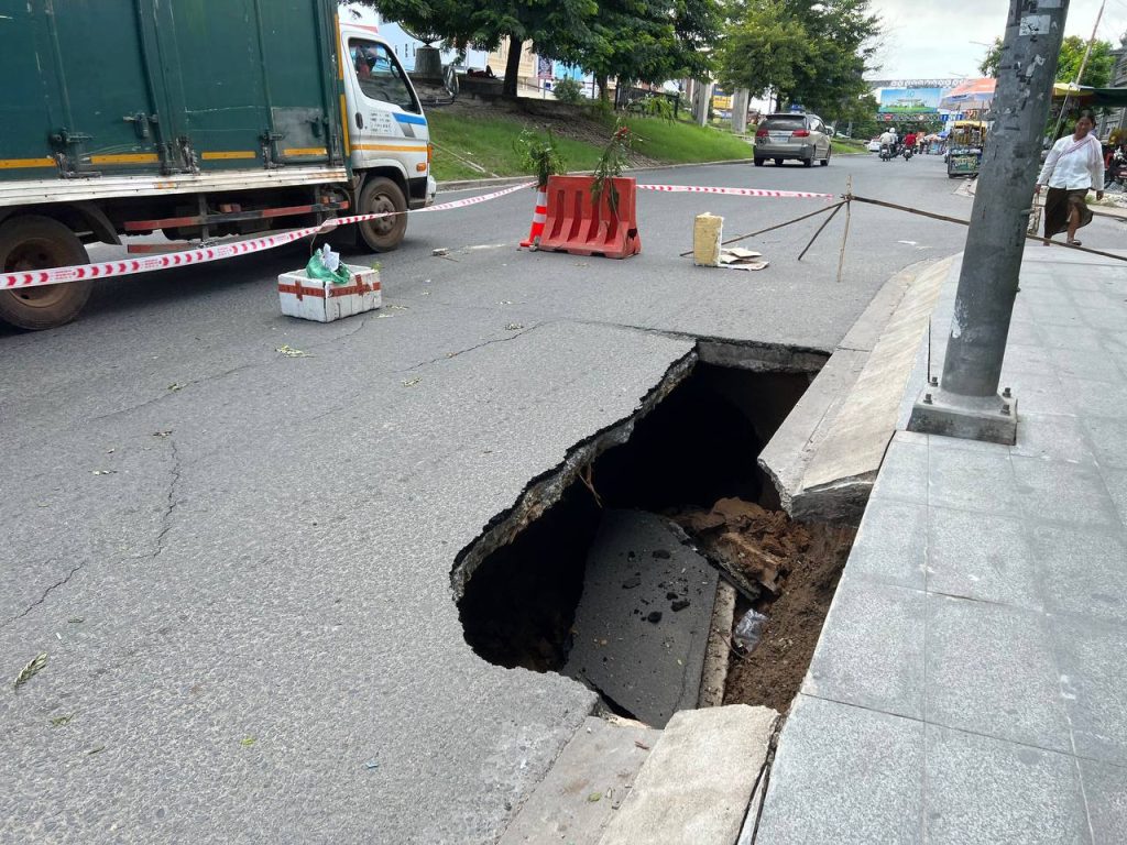 (ភ្នំពេញ)៖ តាមសេចក្ដីរាយការណ៍ពីពលរដ្ឋបានឱ្យដឹងថា កាលពីវេលាម៉ោងប្រមាណជាង២រំលងអាធ្រាត្រ ឈានចូលថ្ងៃទី១០ ខែតុលា ឆ្នាំ ២០២៣ មានការបាក់ស្រុតដីយ៉ាងធំ និងជ្រៅ នៅខាងលិចស្ពានអាកាសស្ទឹងមានជ័យ លេីផ្លូវប្រសបជាប់ផ្លូវ២១៧ ស្ថិតក្នុងសង្កាត់ស្ទឹងមានជ័យទី១ ខណ្ឌមានជ័យ បានធ្វេីឱ្យអ្នកដំណេីរមានការព្រួយបារម្មណ៍ជាខ្លាំង ។
