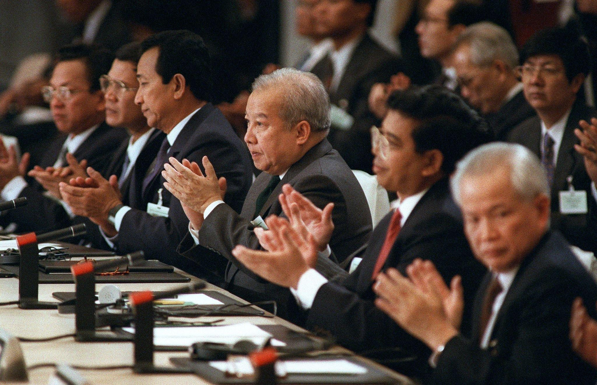 សន្ធិសញ្ញាក្រុងប៉ារីសធ្វើឡើងនៅថ្ងៃទី២៣ ខែតុលា ឆ្នាំ១៩៩១ មានគោលបំណងនៃសន្ធិសញ្ញាគឺ ៖ បញ្ចប់ជម្លោះនយោបាយនិងសង្រ្គាមស៊ីវិលដ៏រ៉ាំរៃនៅកម្ពុជាជាកិច្ចព្រមព្រៀងសន្ដិភាពរវាងភាគីខ្មែរទាំង៤ គឺ ៖ ភាគីរដ្ឋកម្ពុជា ហ្វុនស៊ិនប៉ិច រណសិរ្សជាតិរំដោះប្រជាពលរដ្ឋខ្មែរ និងភាគីខ្មែរក្រហម រួមជាមួយប្រទេសចំនួន ទៀតគឺ សហរដ្ឋអាមេរិក, បារាំង, ចិន, ថៃ, អង់គ្លេស, វៀតណាម, ឥណ្ឌូណេស៊ី, ឡាវ, ជប៉ុន, អូស្ដា្រលី, កាណាដា, ឥណ្ឌា, សិង្ហបុរី, រូស៊ី, ភីលីពីន, ម៉ាឡេស៊ី, ប្រ៊ុយណេ, យូហ្គស្លាវី។ រៀបចំការបោះឆ្នោតលើដំបូងនៅឆ្នាំ១៩៩៣ និមិត្តរូបនៃការដោះស្រាយបញ្ហារបស់ខ្លួនក្រោមការជួយជ្រោមជ្រែងពីបរទេស។