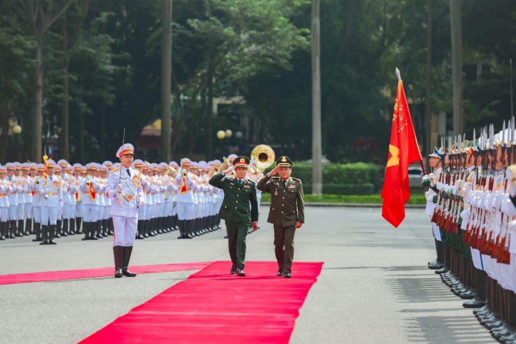 ភ្នំពេញ៖ នាយឧត្តមសេនីយ៍ វង្ស ពិសេន អគ្គមេបញ្ជាការនៃកងយោធពលខេមរភូមិន្ទ និងឯកឧត្តម ង្វៀន តឹងគឿង អនុរដ្ឋមន្ត្រីក្រសួងការពារប្រទេស និងជាប្រធានអគ្គសេនាធិការកងទ័ពប្រជាជនវៀតណាម បានឯកភាពគ្នាបន្តលើកកម្ពស់កិច្ចសហប្រតិបត្តិការវិស័យយោធា ដើម្បីរក្សាសន្តិភាព ស្ថិរភាព និងការអភិវឌ្ឍប្រទេសទាំងពីរ។