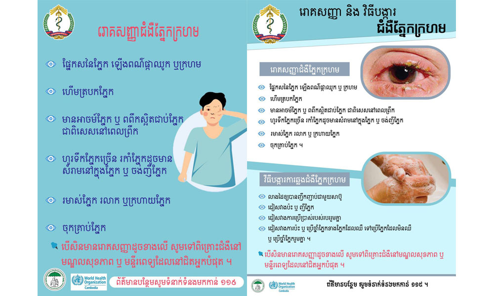 ក្រសួងសុខាភិបាល ក្រើនរំឮកពលរដ្ឋឱ្យប្រុងប្រយ័ត្នជំងឺភ្នែកក្រហម ខណៈជំងឺនេះកំពុងឆ្លងថ្មីគួរឱ្យកត់សម្គាល់