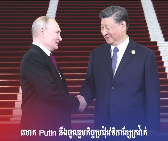 ប្រធានាធិបតីរុស្ស៊ី លោក Putin ធ្វើដំណើរទៅប្រទេសចិន ដើម្បីចូលរួមក្នុងកិច្ចប្រជុំកំពូលនៃវេទិកាខ្សែក្រវ៉ាត់ និងផ្លូវលើកទី៣ ដែលនឹងពិភាក្សាអំពីបញ្ហាសង្រ្គាមអ៉ីស្រាអែល និងក្រុមហាម៉ាស់One-Minuteព័ត៌មានអន្តរជាតិអត្ថបទដោយ៖AMS OneMinute #ams1minute AMS OneMinuteអត្ថបទមុនអត្ថបទបន្ទាប់