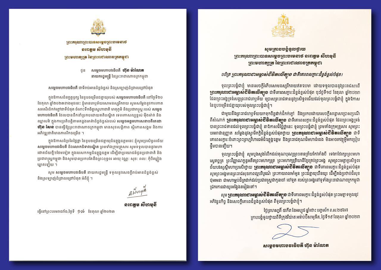 សម្ដេចធិបតី ហ៊ុន ម៉ាណែត ថ្វាយអំណរព្រះគុណ ថ្វាយព្រះ មហា ក្សត្រ ដែលព្រះអង្គទ្រង់បានប្រោស ព្រះរាជទាននូវព្រះរាជសារ នាឱកាសថ្ងៃខួបចម្រេីនជន្មាយុ