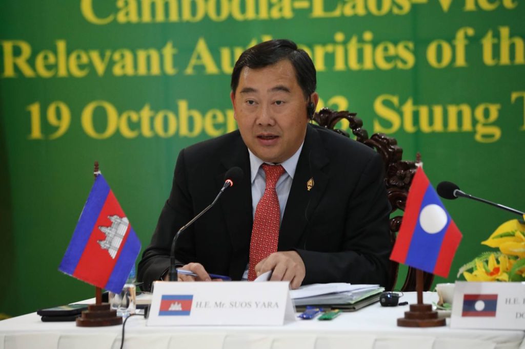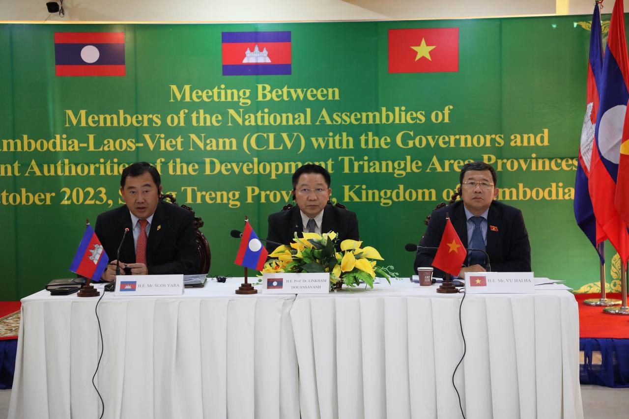 ប្រភពគេហទំព័ររដ្ឋសភានៅព្រឹកថ្ងៃទី ២០ ខែតុលា បានឱ្យដឹងថា មុនចាប់ផ្តើមទស្សនកិច្ចទៅកាន់ទីតាំងទាំងខាងលើគណៈប្រតិភូ ជាន់ខ្ពស់ នៃ រដ្ឋសភា កម្ពុជា ឡាវ វៀតណាម បានជួបប្រជុំគ្នានៅ សណ្ឋាគារអង្គរមាស ខេត្តស្ទឹងត្រែង នាព្រឹកថ្ងៃទី១៩ ខែតុលា។ គណៈ ប្រតិភូបាន ស្ដាប់របាយការណ៍ និងពិភាក្សាជាមួយអភិបាលខេត្តទាំង បួនរបស់កម្ពុជា ស្ថិតក្នុងតំបន់ត្រីកោណអភិវឌ្ឍន៍ជាប់ព្រំដែន វៀតណាម មាន ខេត្តស្ទឹងត្រែង ខេត្តរតនគិរី ខេត្តមណ្ឌលគិរី និងខេត្តក្រចេះ។