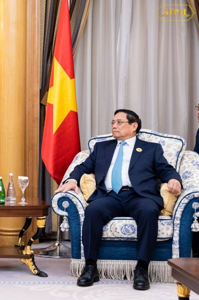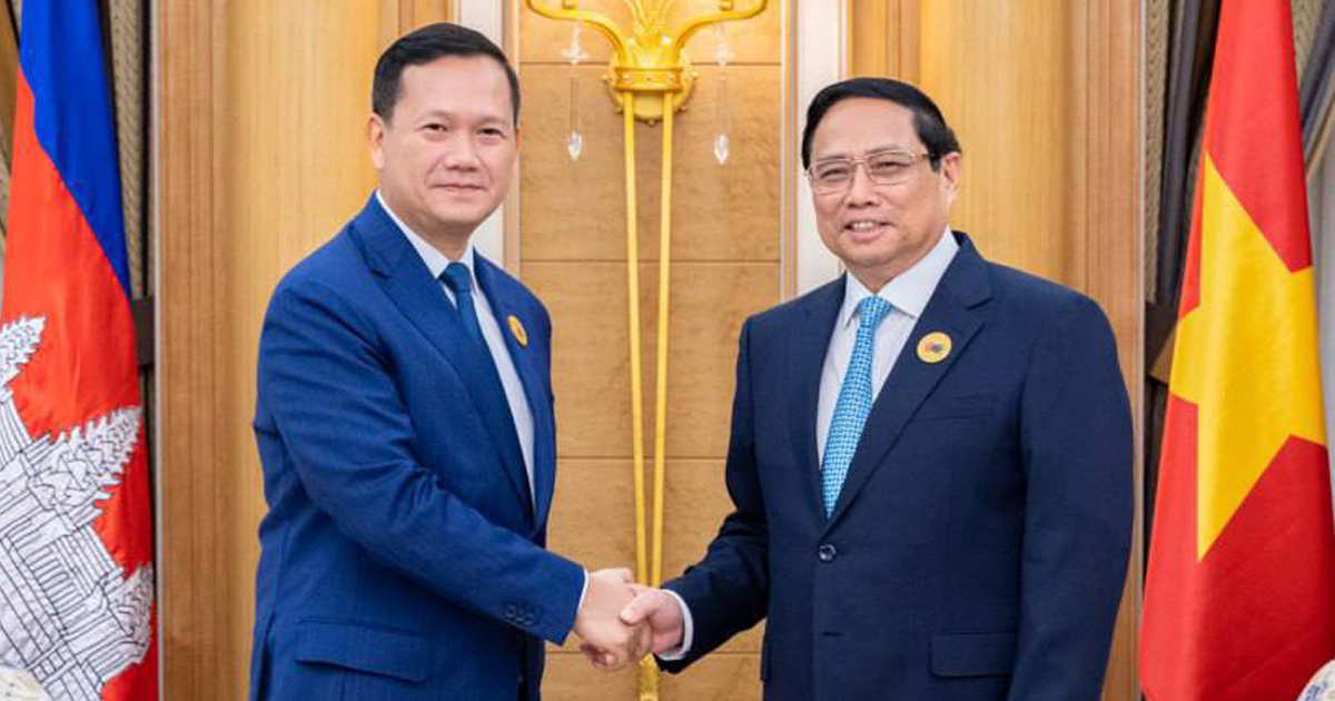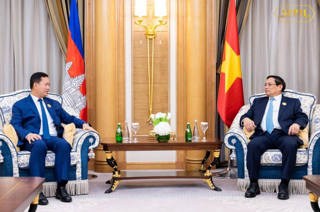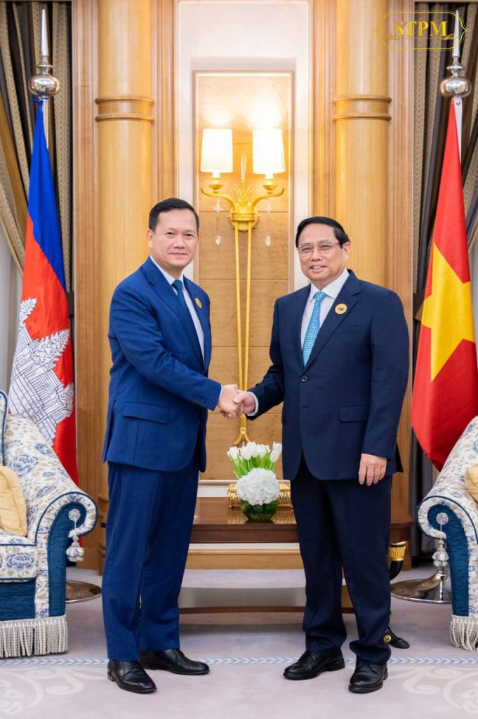 សម្តេចមហាបវរធិបតី ហ៊ុន ម៉ាណែត នាយករដ្ឋមន្រ្តី នៃព្រះរាជាណាចក្រកម្ពុជា នាព្រឹកថ្ងៃទី២០ ខែតុលា ឆ្នាំ២០២៣ បានជួបពិភាក្សាការងារជាមួយ ឯកឧត្តម ផាម មីញជីញ (Pham Minh Chinh) នាយករដ្ឋមន្ត្រី នៃសាធារណរដ្ឋសង្គមនិយមវៀតណាម ក្នុងឱកាសនៃការចូលរួមក្នុង “កិច្ចប្រជុំកំពូលអាស៊ាន-ក្រុមប្រឹក្សាសហប្រតិបត្តិការឈូងសមុទ្រ” នៅទីក្រុងរីយ៉ាដ ព្រះរាជាណាចក្រអារ៉ាប់ប៊ីសាអូឌីត។