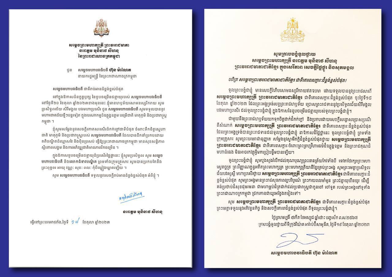 សារលិខិតថ្លែងអំណរព្រះរាជគុណ របស់សម្តេចមហាបវរធិបតី ហ៊ុន ម៉ាណែត