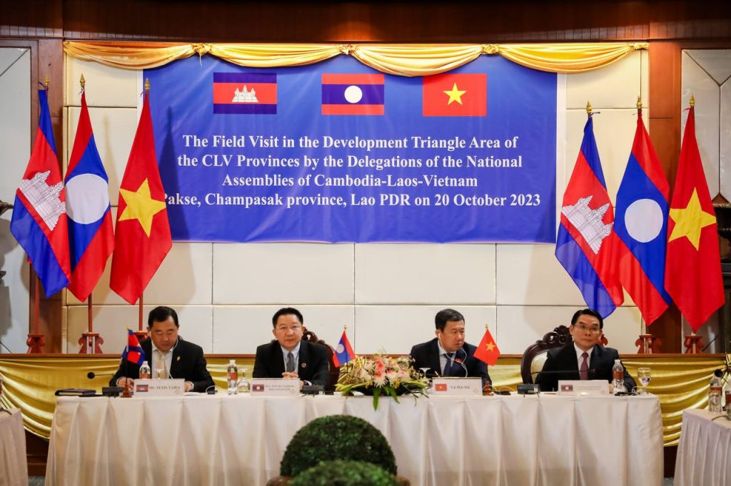 ភ្នំពេញ៖ គណៈប្រតិភូរដ្ឋសភាកម្ពុជា-ឡាវ-វៀតណាម (CLV) បានស្ដាប់របាយការណ៍និងពិភាក្សាជាមួយអភិបាលខេត្តទាំង៤ ក្នុងតំបន់ត្រីកោណអភិវឌ្ឍន៍ជាប់ព្រំដែនឡាវ រួមមានខេត្តចំប៉ាសាក់ ខេត្តសាលាវណ្ណ ខេត្តសេកុង និងខេត្តអាតាពឺ កាលពីថ្ងៃទី២០ ខែតុលា ឆ្នាំ២០២៣។ គណៈប្រតិភូរដ្ឋសភាកម្ពុជាត្រូវបានដឹកនាំដោយឯកឧត្តម សួស យ៉ារ៉ា ប្រធានគណៈកម្មការកិច្ចការបរទេស សហប្រតិបត្តិការអន្តរជាតិ ឃោសនាការ និងព័ត៌មាន។
